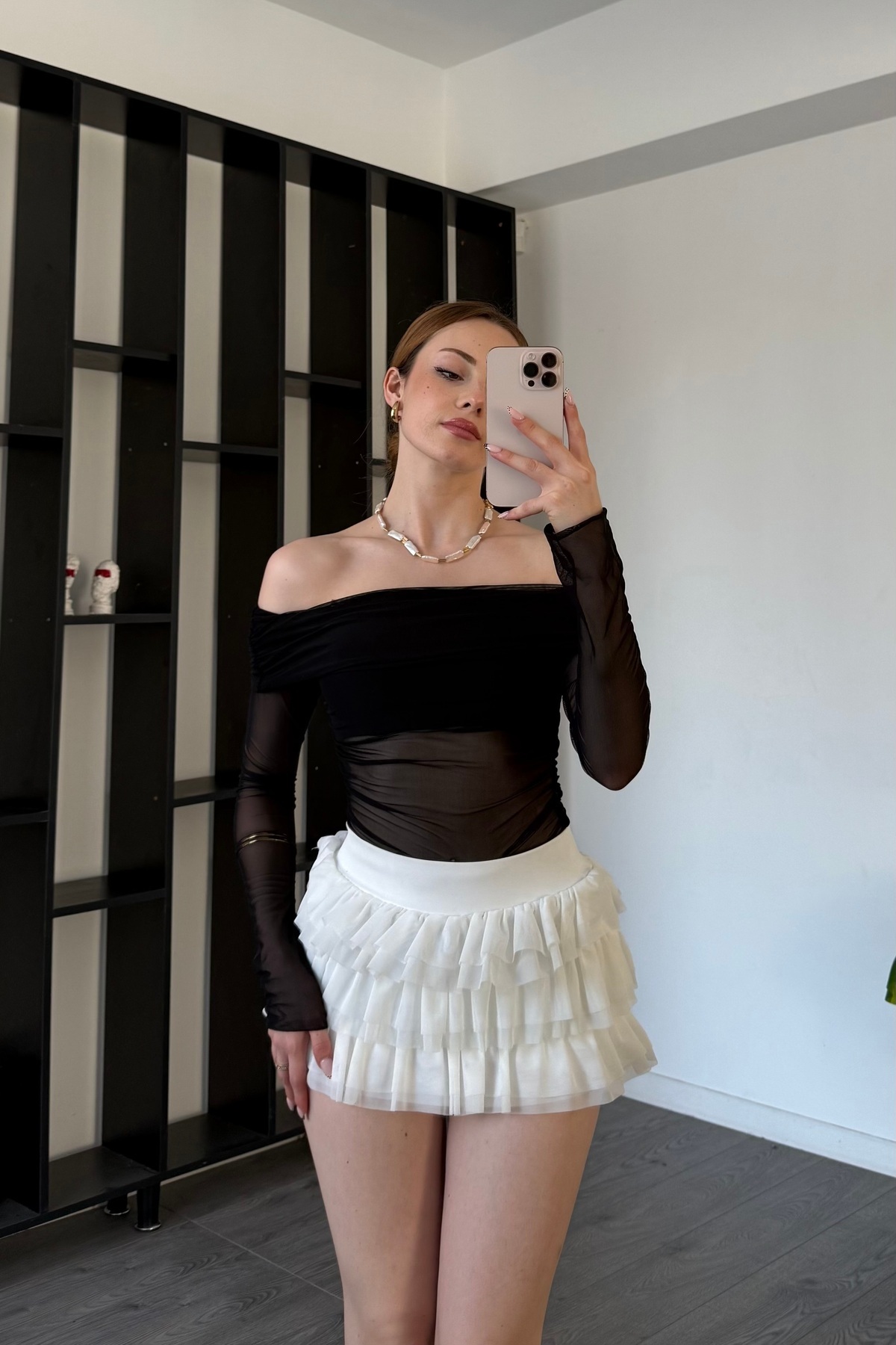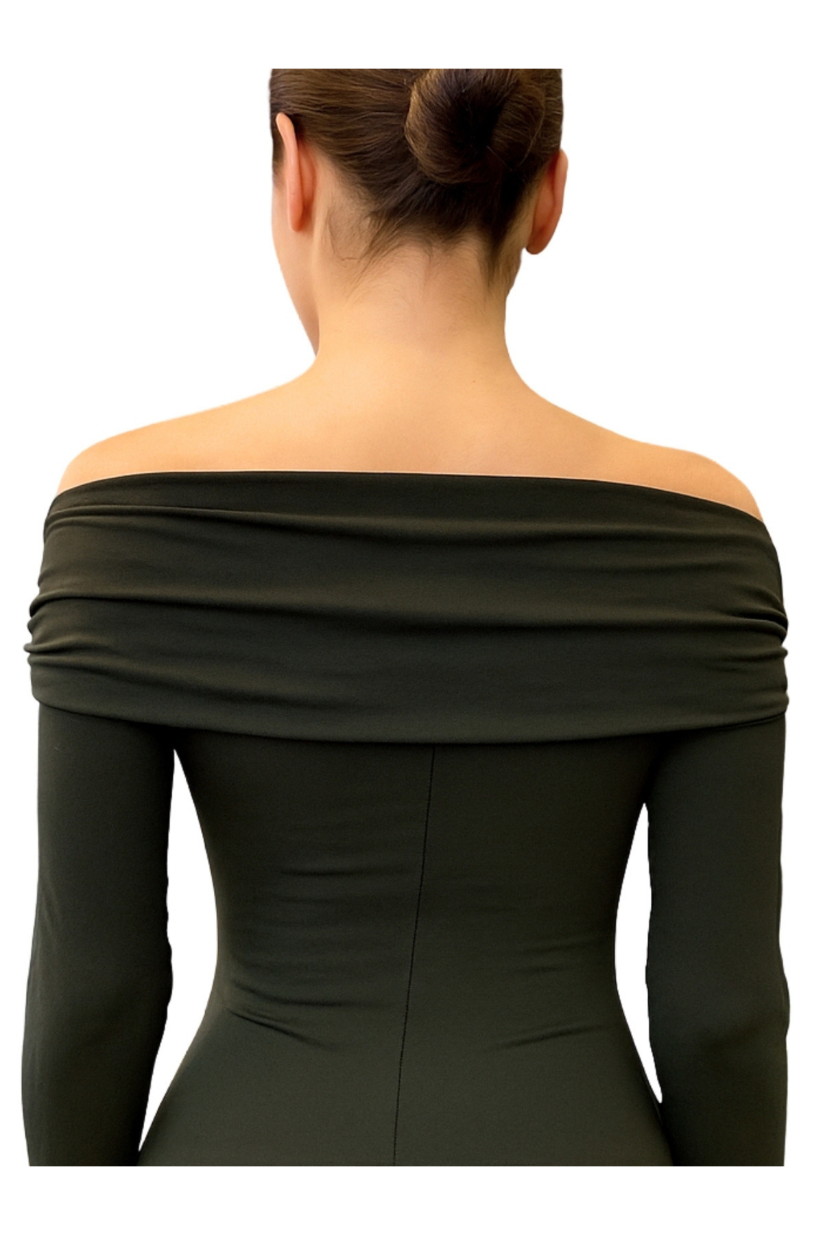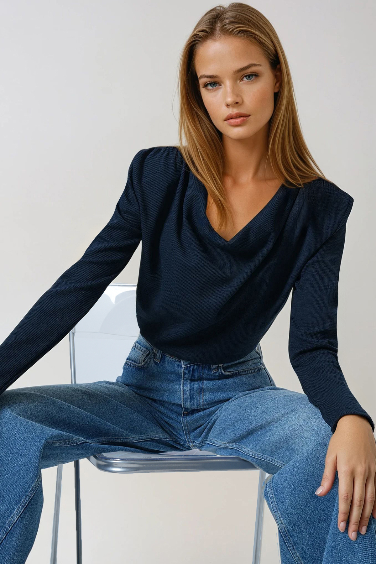 Kadın Öpücük Yaka Drapeli Jarse Bodysuit Kadın Öpücük Yaka Drapeli Jarse Bodysuit BS1011 L