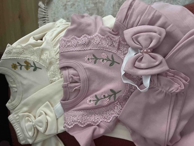 hastane çıkışı dantelli nakışlı fiyonk lu organik pamuk hastane çıkışı dantelli nakışlı fiyonk lu organik pamuk 1850AS 0-3 AY