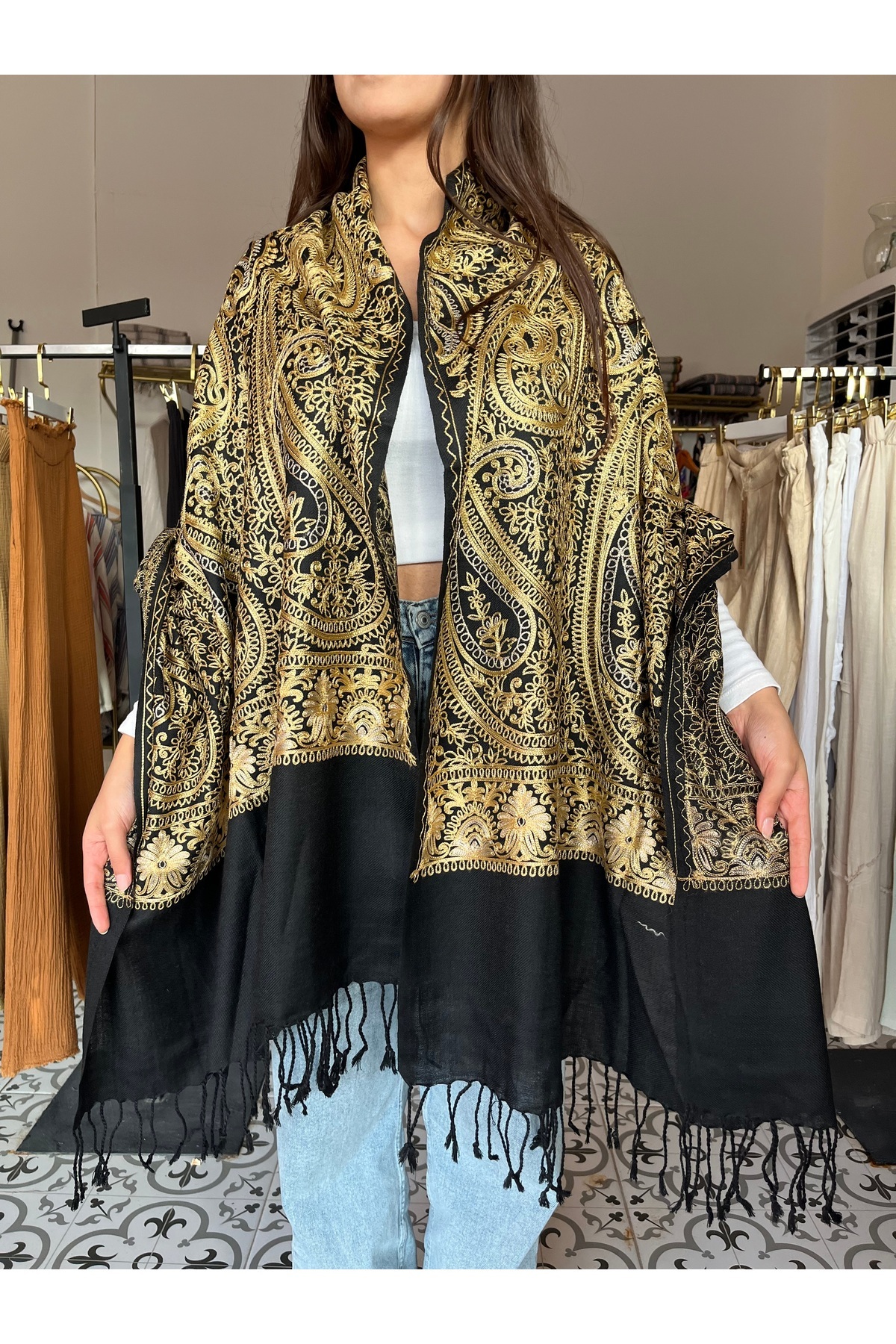 Etnik Desenli Lacivert Omuz Şalı Etnik Desenli Lacivert Omuz Şalı MM0576DEF 70 x 190