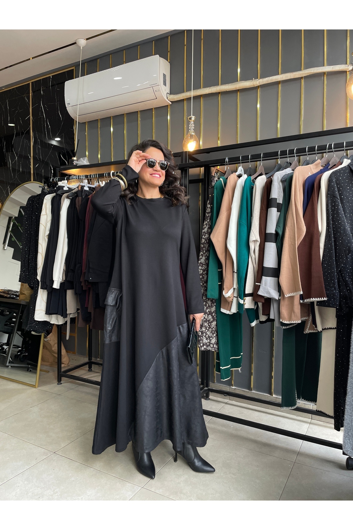 SKY MODAL DERİ DETAYLI ELBİSE SKY MODAL DERİ DETAYLI ELBİSE SKY-MDL-ELBS 2