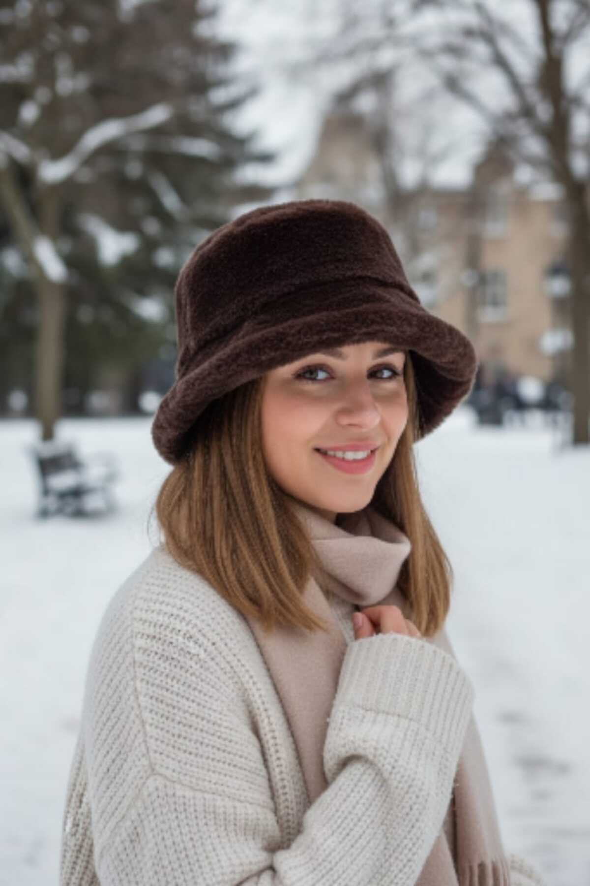 14817 Kahverengi Peluş Bucket Şapka 14817 Kahverengi Peluş Bucket Şapka NW14817 تک سایز