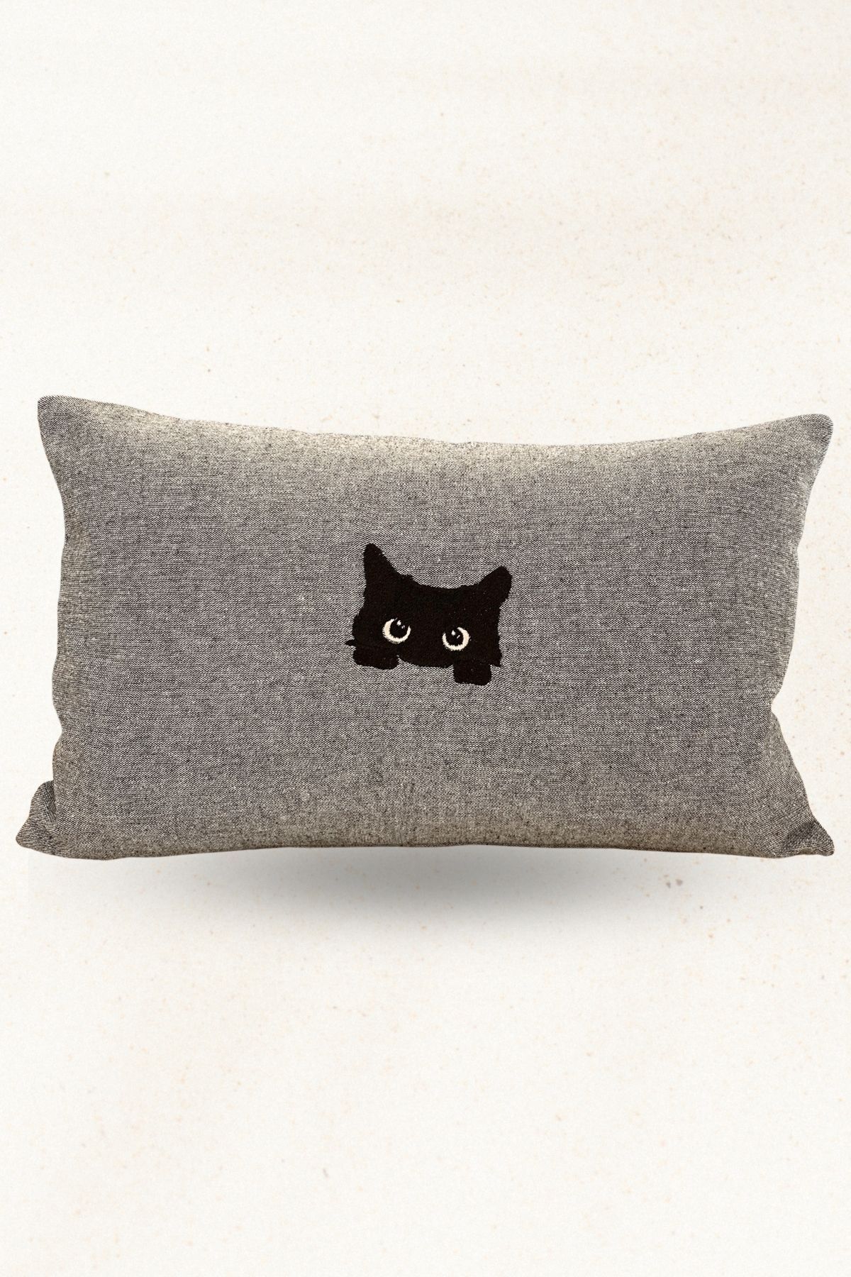 %100 Keten Nakışlı Dekoratif Yastık – Gözlüklü Kedi Desenli Dolgulu Kırlent %100 Keten Nakışlı Dekoratif Yastık – Gözlüklü Kedi Desenli Dolgulu Kırlent kedi-1 42 x 42