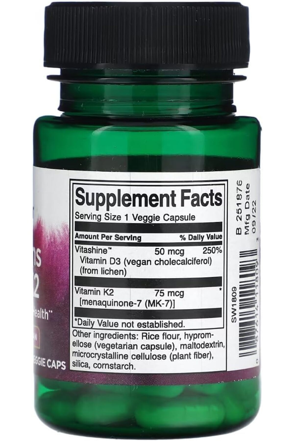 Vitamins D3 & K2 MK-7 2000 IU Bone and Immune Health 60 Veggie Caps Vitamins D3 & K2 MK-7 2000 IU Bone and Immune Health 60 Veggie Caps swansond3k260 تک سایز