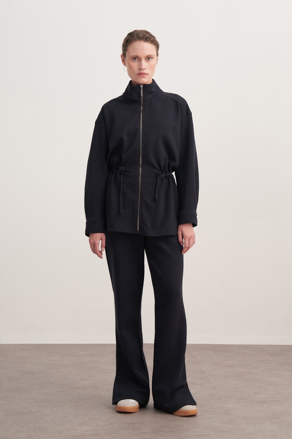 Kadın İnterlok Oversize Spor Ceket Takım Siyah Kadın İnterlok Oversize Spor Ceket Takım Siyah 25-AW-İNT-587-EBU-SBHR L/XL