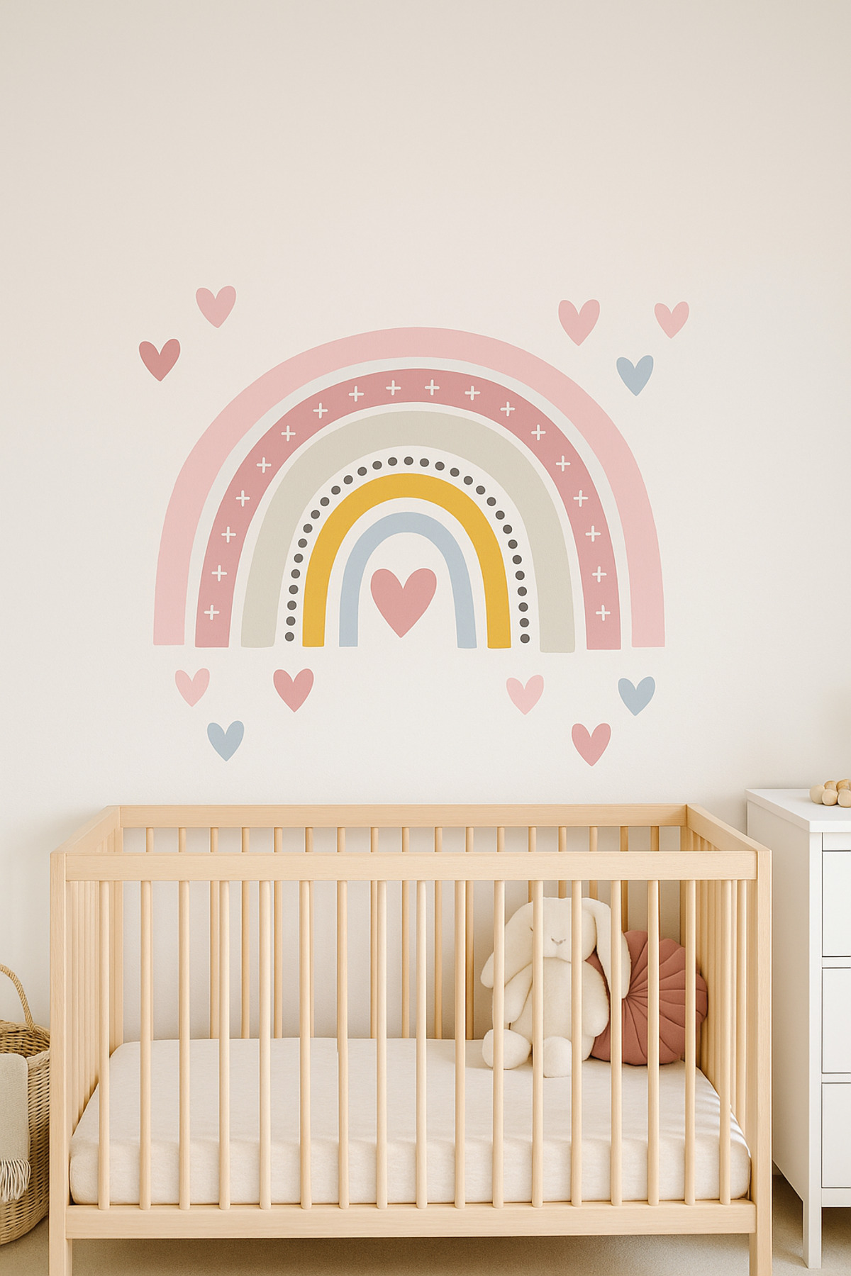 Pastel Renkli Gökkuşağı ve Kalp Desenli Duvar Stickerı | Bebek & Çocuk Odası Dekoru Pastel Renkli Gökkuşağı ve Kalp Desenli Duvar Stickerı | Bebek & Çocuk Odası Dekoru 025 75 x 75