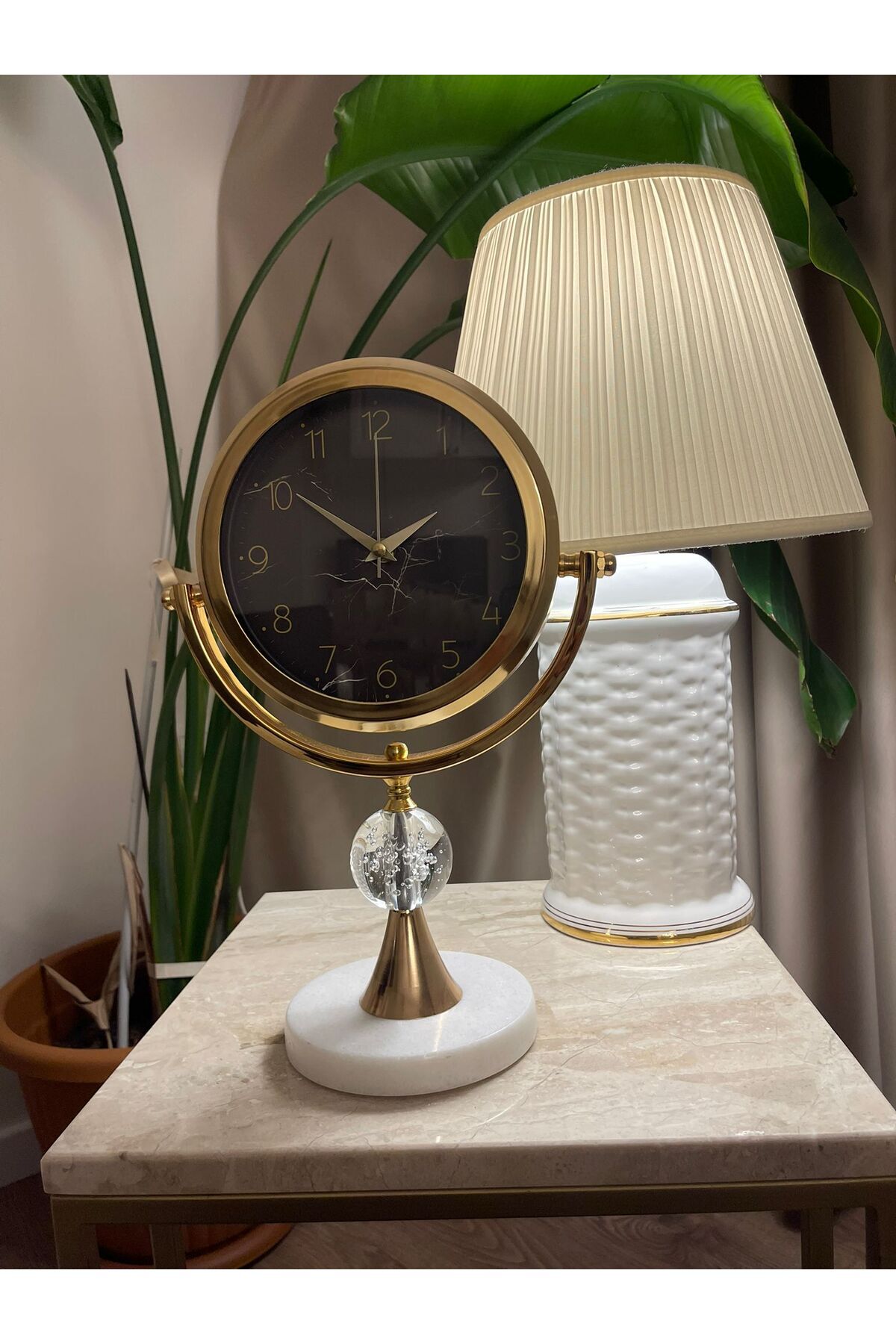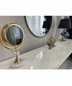 Mermer Taşlı Kar Küreli Dekoratif Masa Saati Mermer Taşlı Kar Küreli Dekoratif Masa Saati Gümüş,Eskitme,Gold تک سایز