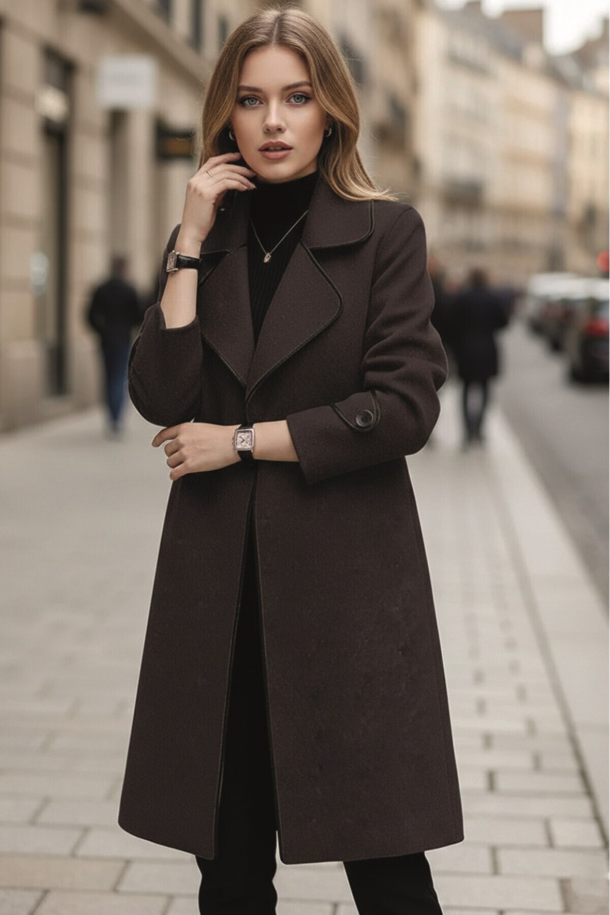 Kaşe Kadın Şık Yaka Kaban ve Kemer Kaşe Kadın Şık Yaka Kaban ve Kemer cotds13kahve 2XL
