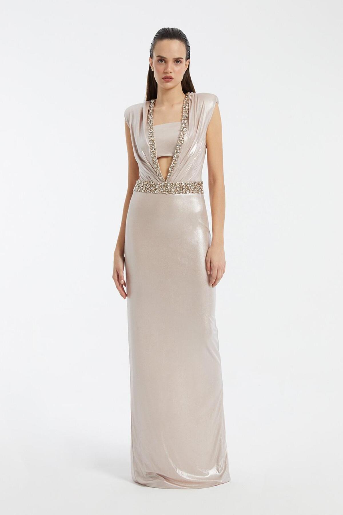 Sırt Dekolte Detaylı Payet Uzun Abiye Elbise - 9201C Sırt Dekolte Detaylı Payet Uzun Abiye Elbise - 9201C 101ABY25S.00039 46