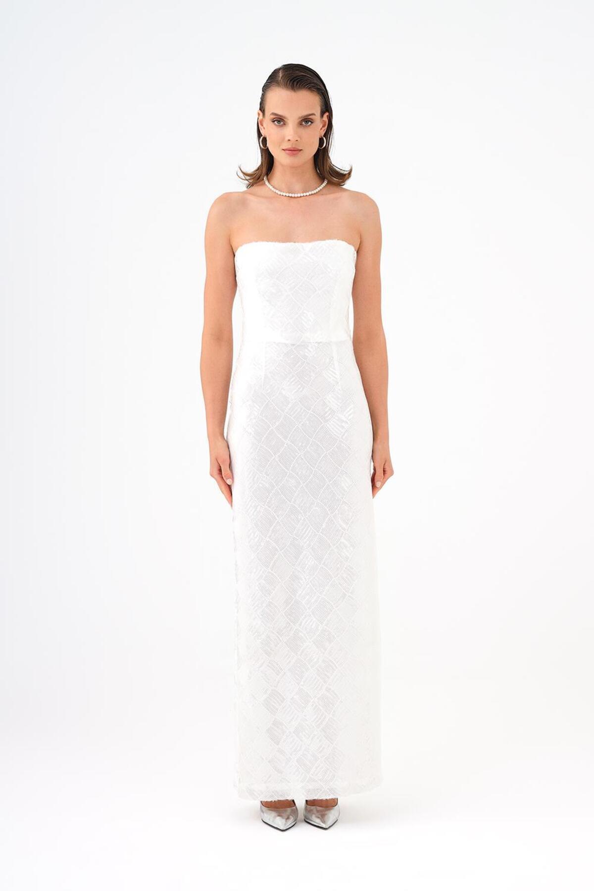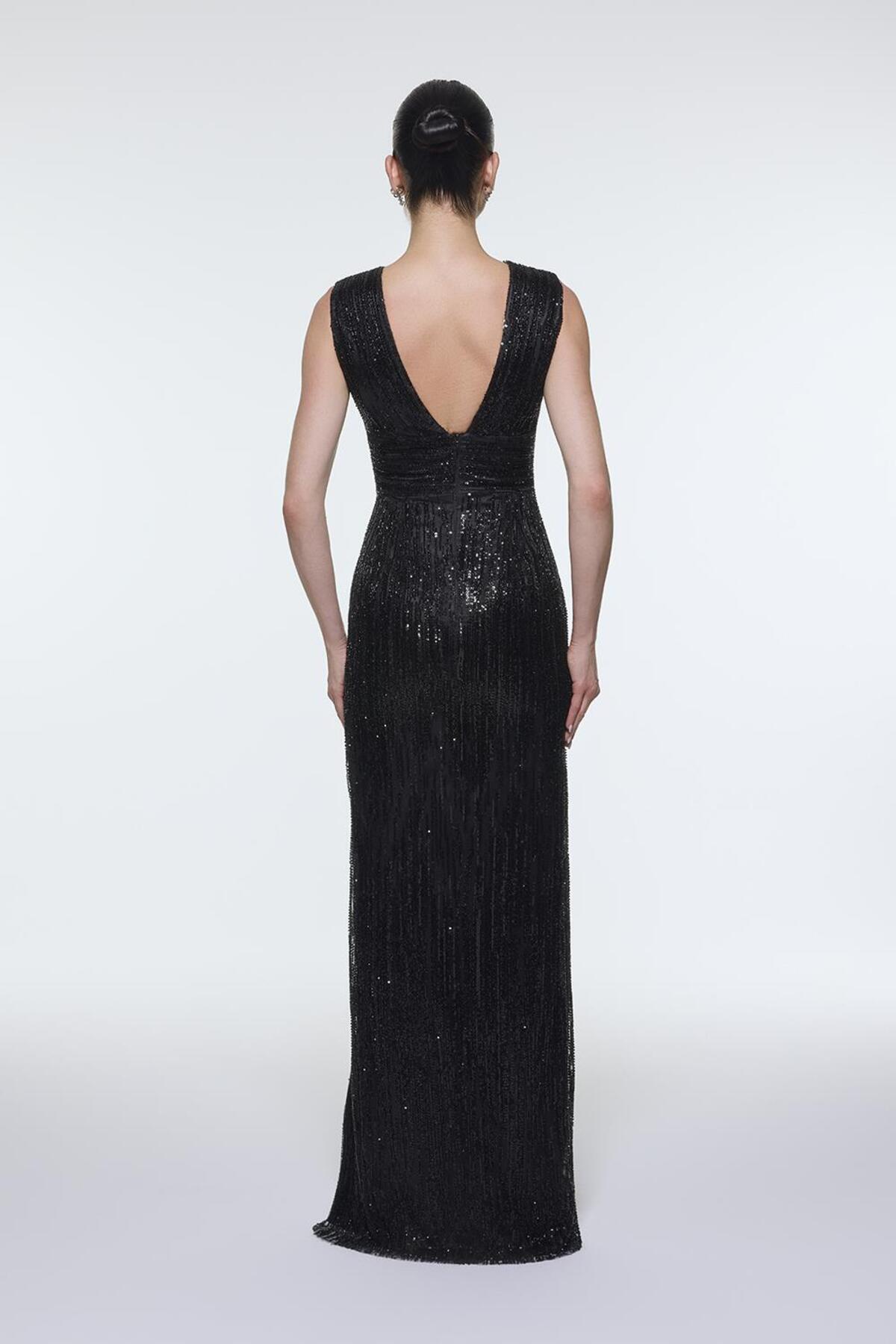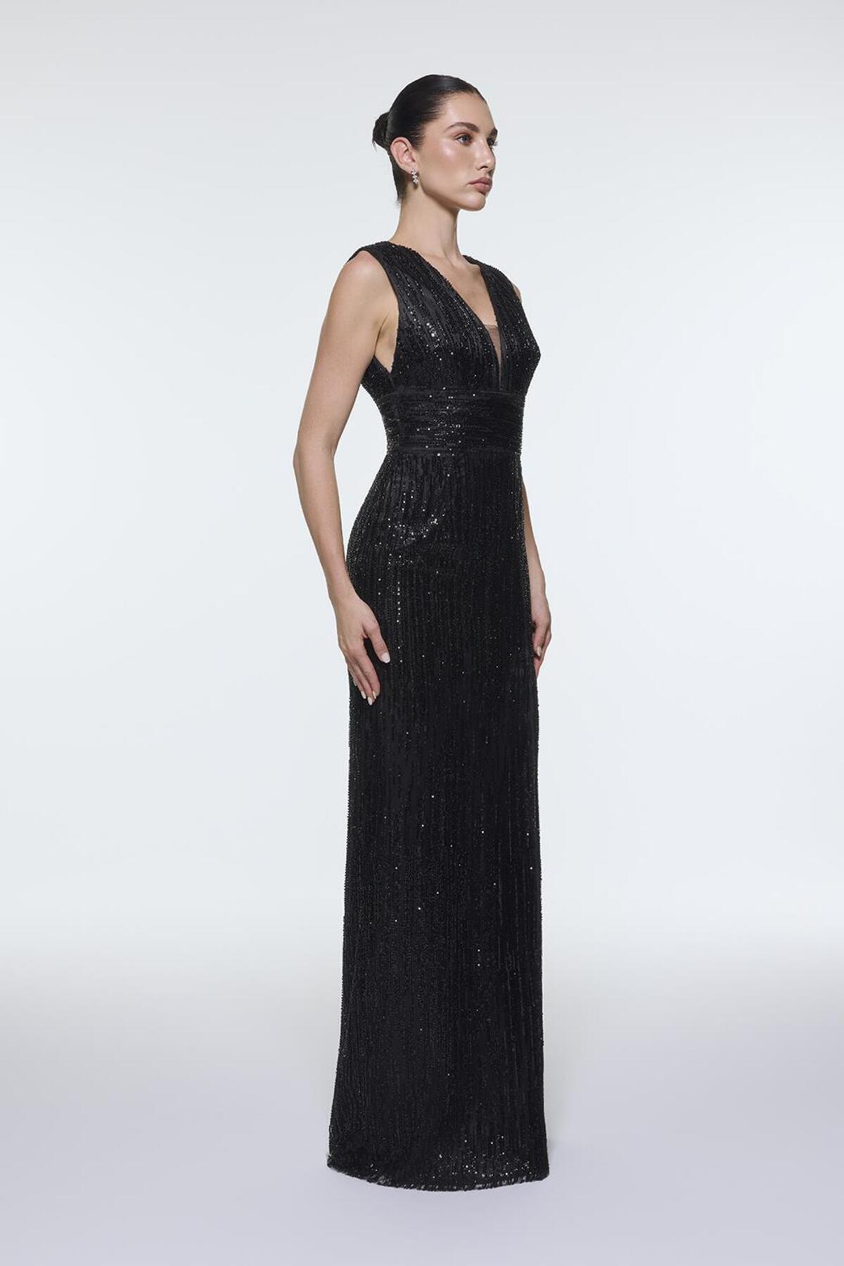 V Yakalı Kolsuz Taş İşlemeli Abiye Elbise - 9349C V Yakalı Kolsuz Taş İşlemeli Abiye Elbise - 9349C 101ABY25S.00050 42