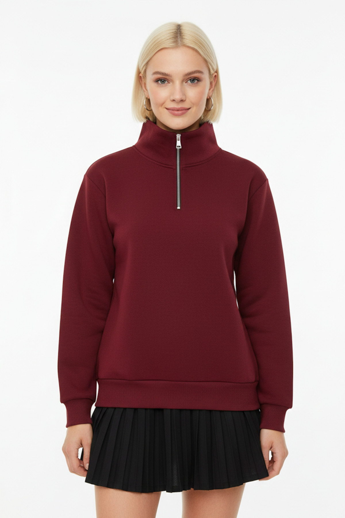 Bordo Basic Dik Yaka İçi Pamuklu Polarlı Yarım Fermuarlı Regular Normal Kalıp Sweatshirt Bordo Basic Dik Yaka İçi Pamuklu Polarlı Yarım Fermuarlı Regular Normal Kalıp Sweatshirt LY-ST03 2XL