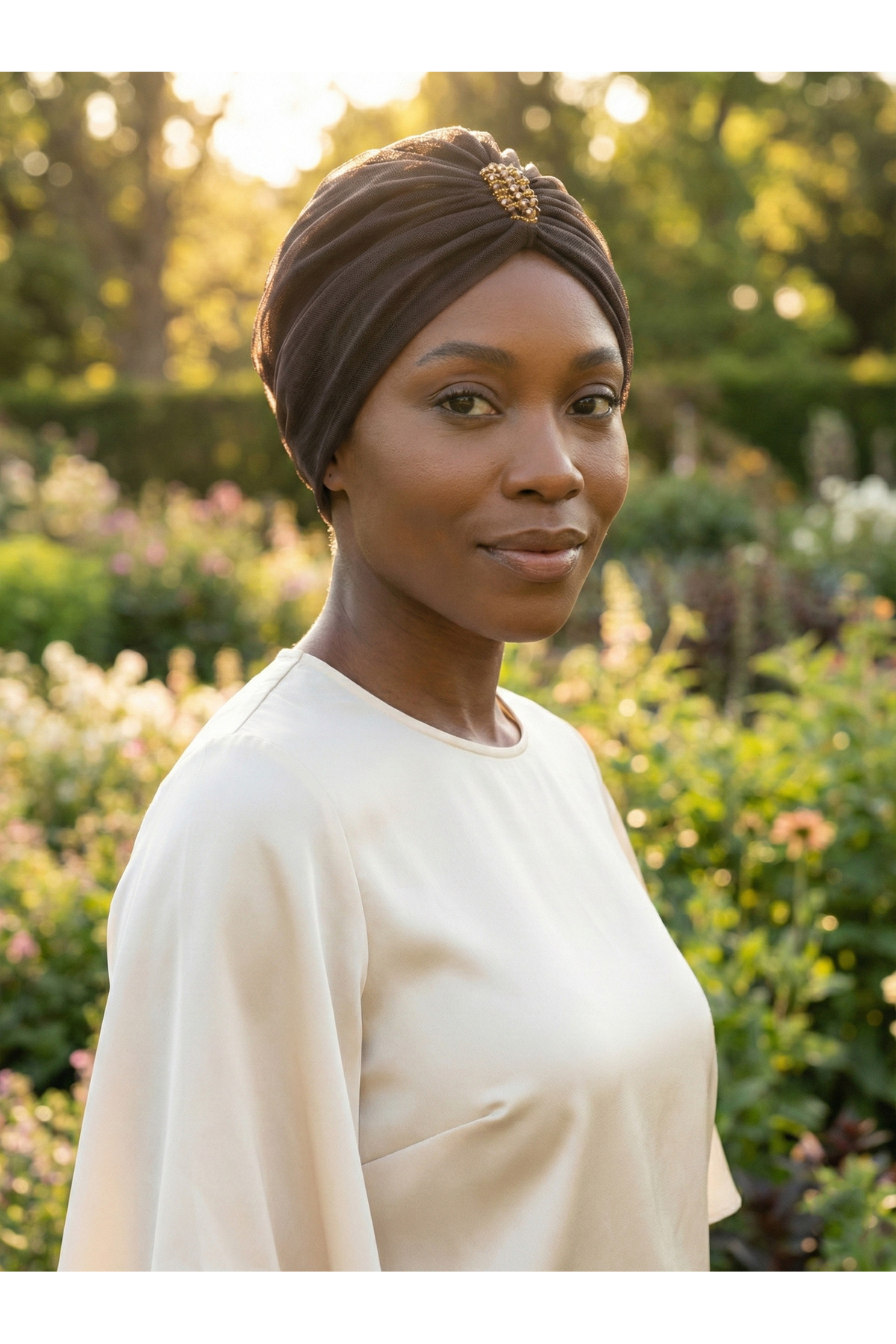 Dizayn Tüllü Kristal Taş İşlemeli Çift Taraflı Astarlı Kahve Hazır Türban Tesettür Abiye Bone Dizayn Tüllü Kristal Taş İşlemeli Çift Taraflı Astarlı Kahve Hazır Türban Tesettür Abiye Bone FDN2016-223 Standart