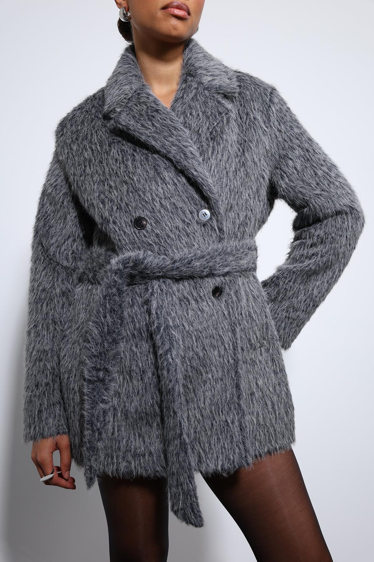Antrasit Kısa Suni Kürklü Kaban Antrasit Kısa Suni Kürklü Kaban BA25Y618 L