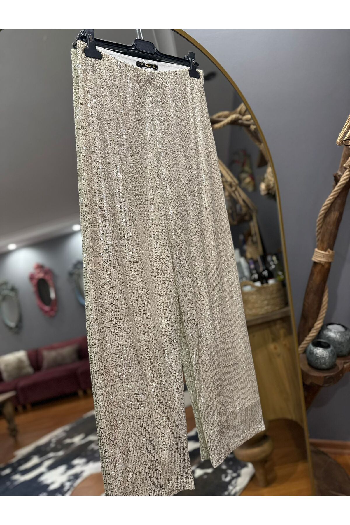 Pullu Beli Lastikli Salaş Pantolon-ekru Pullu Beli Lastikli Salaş Pantolon-ekru df4444-98 L