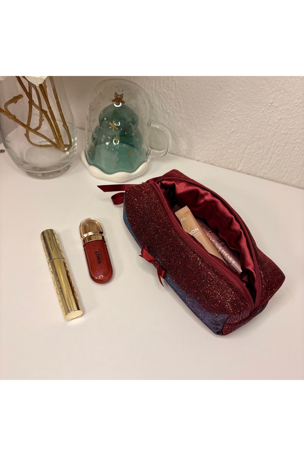 Premium Simli Bordo Makyaj Çantası/ Kalemlik – Geniş Hacimli, Saten Astarlı, Özel Tasarım Premium Simli Bordo Makyaj Çantası/ Kalemlik – Geniş Hacimli, Saten Astarlı, Özel Tasarım VG629292DX تک سایز