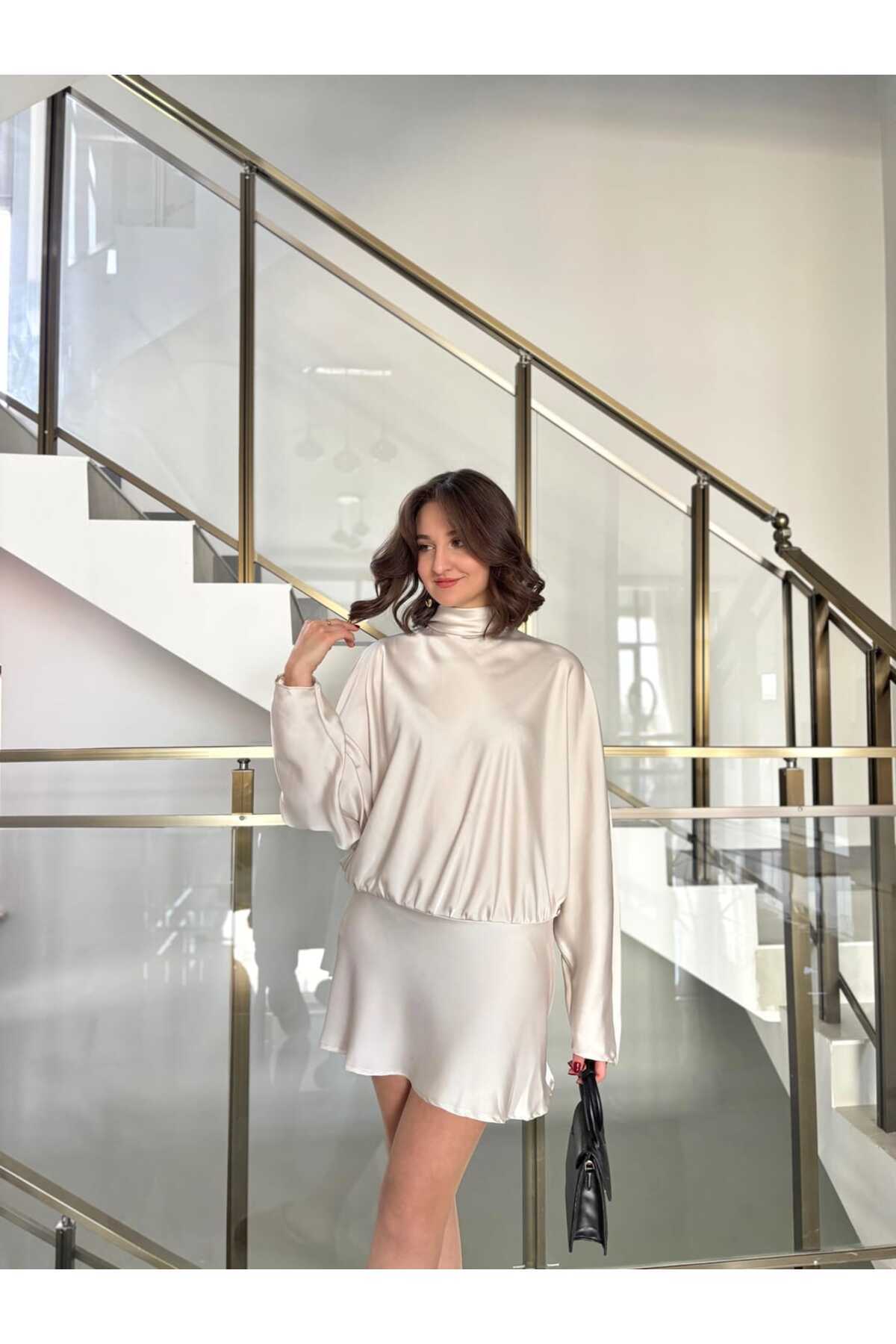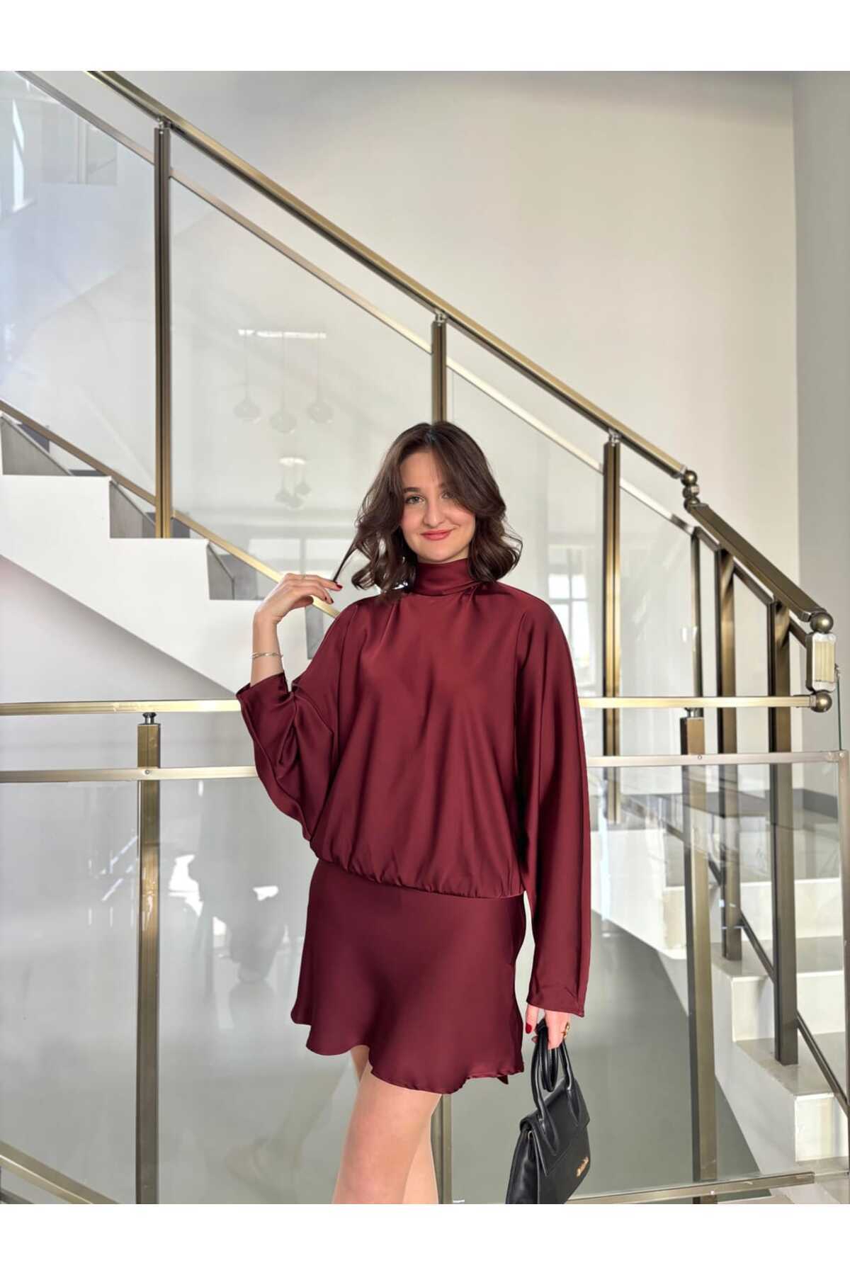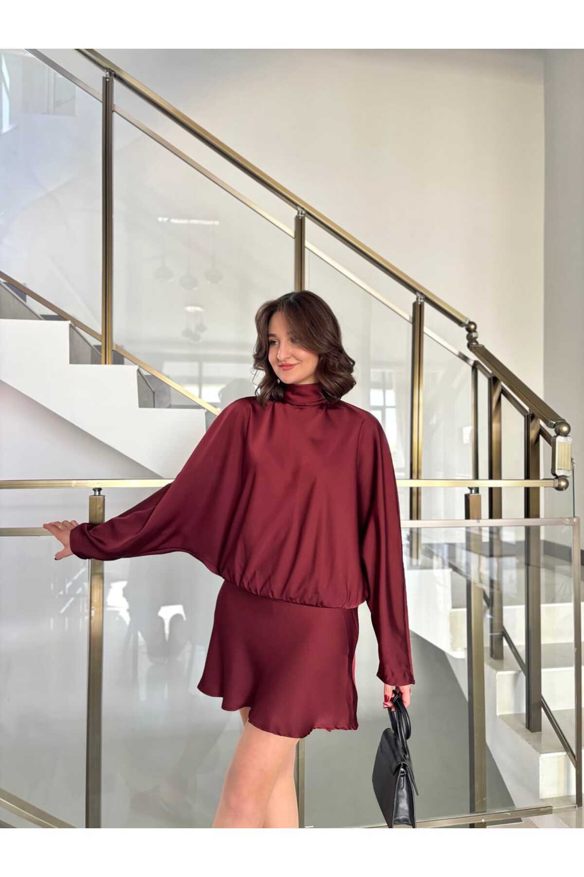 Yarasa Kol Dökümlü Saten Elbise Yarasa Kol Dökümlü Saten Elbise SK-13905 L
