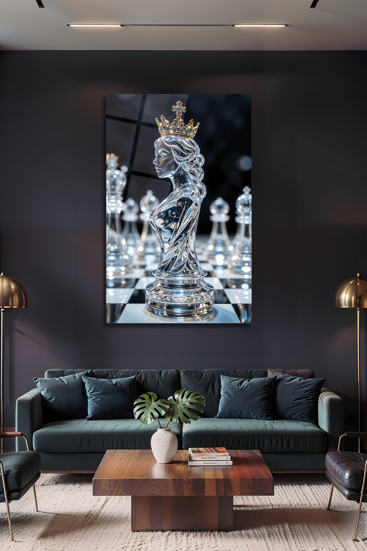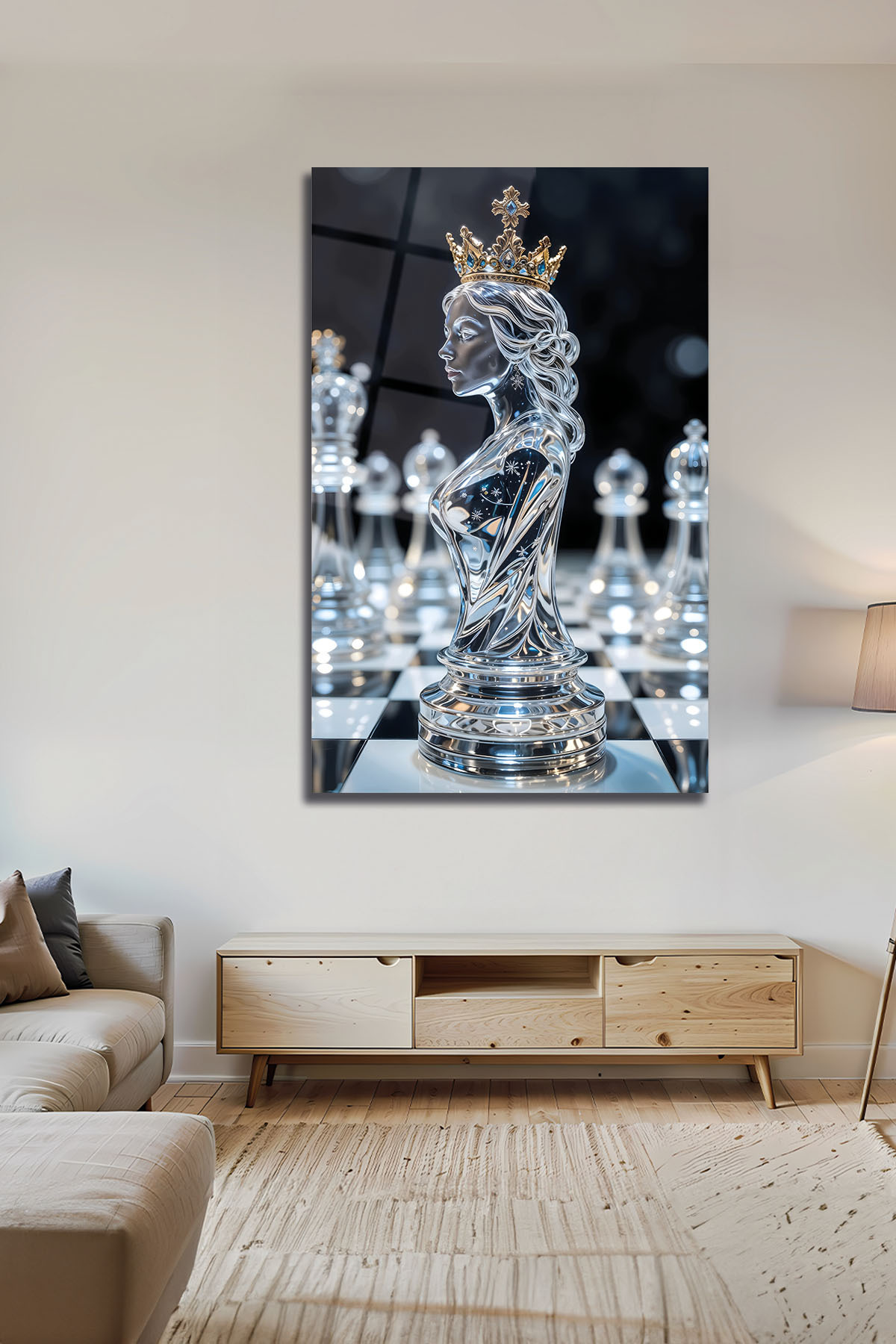 Kristal Kraliçe Satranç Taşı Altın Taçlı Fantastik Dekoratif Cam Tablo Modern Salon ve Ofis Dekoru Kristal Kraliçe Satranç Taşı Altın Taçlı Fantastik Dekoratif Cam Tablo Modern Salon ve Ofis Dekoru TBBWQ 150 x 95