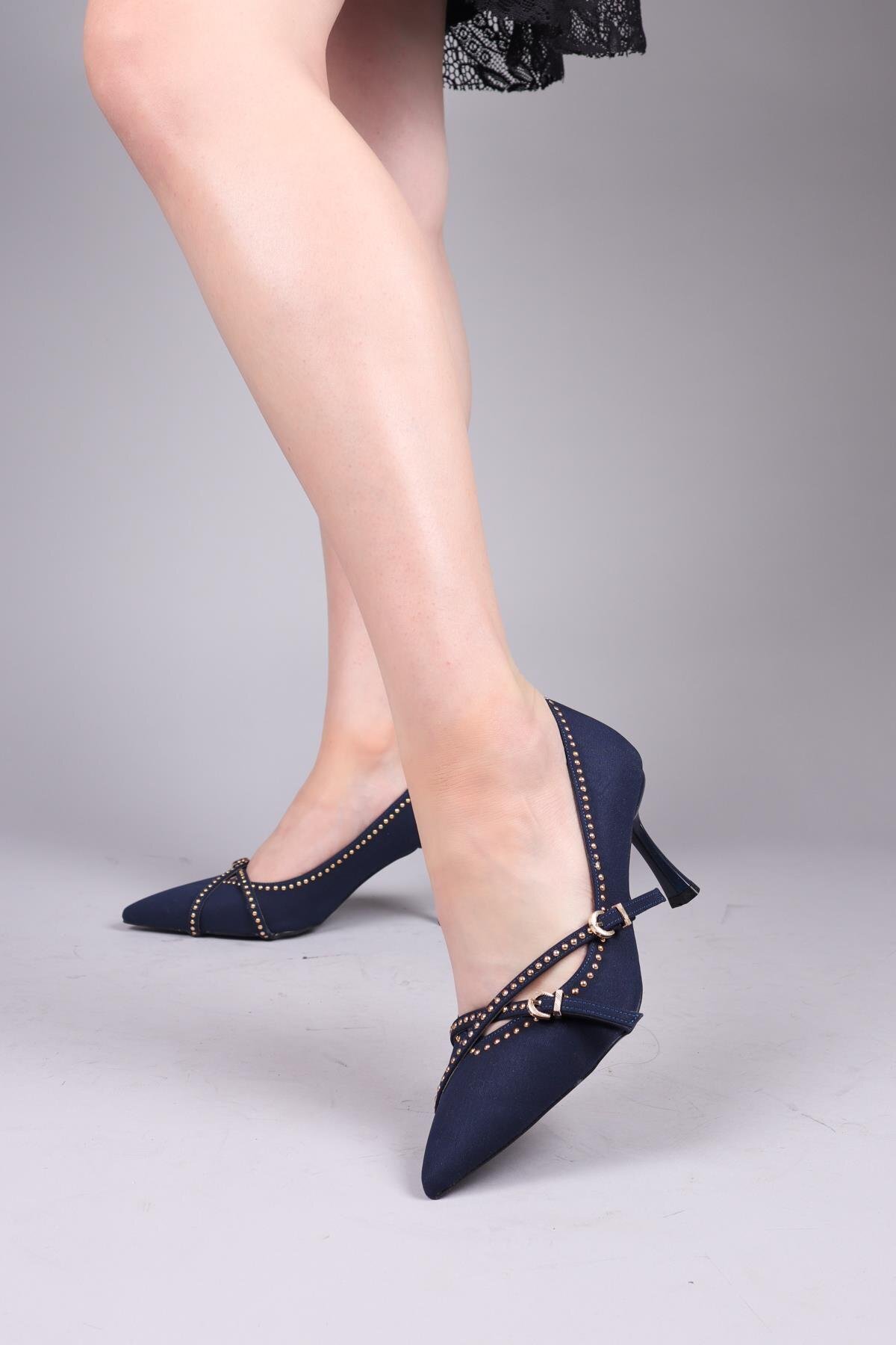 Stiletto kadın topuklu ayakkabı Lacivert Kırışık konforlu günlük ve özel günler için Vegan Deri Stiletto kadın topuklu ayakkabı Lacivert Kırışık konforlu günlük ve özel günler için Vegan Deri 202m 41