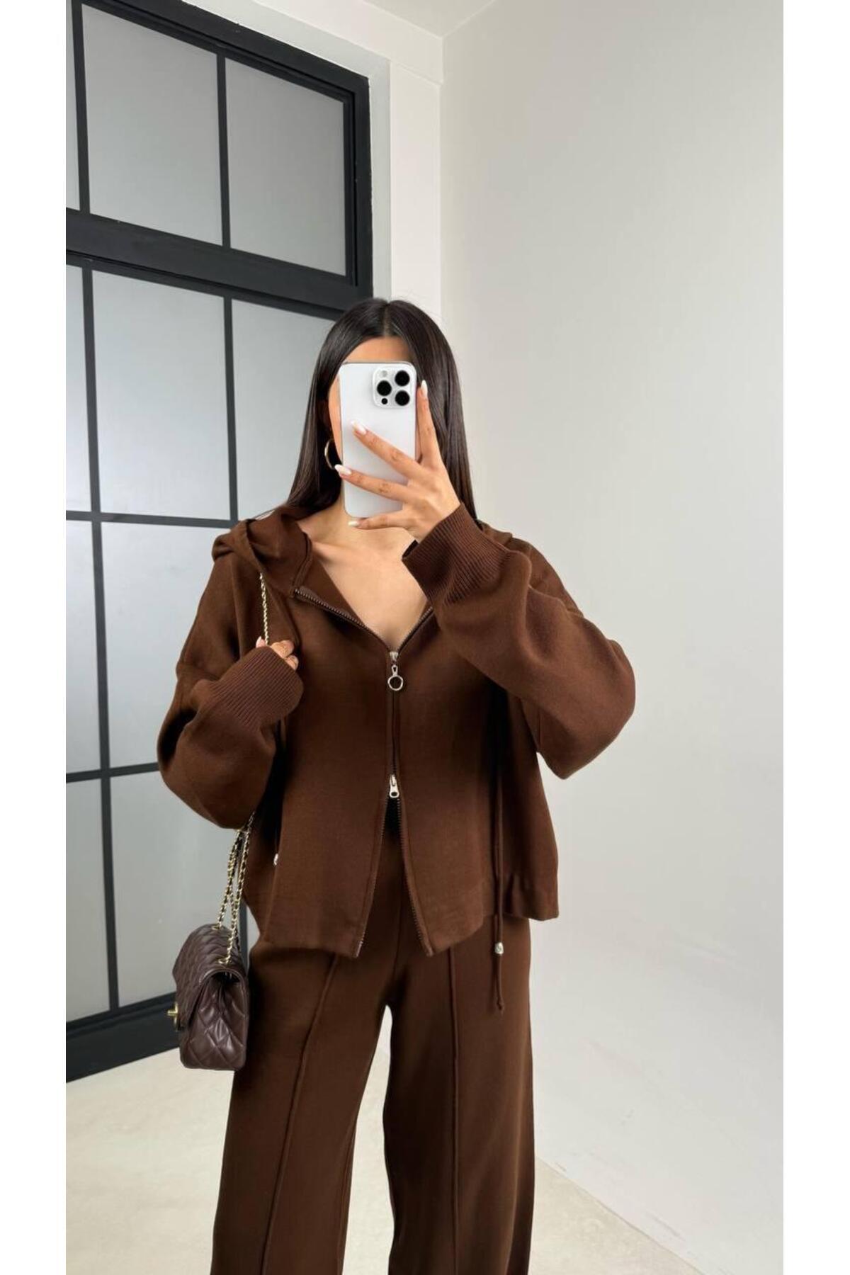 t Çift Fermuarlı Kapüşonlu Hırka Beli Lastikli Pantolon İkili Triko Takım t Çift Fermuarlı Kapüşonlu Hırka Beli Lastikli Pantolon İkili Triko Takım trikoikilitakım Standart