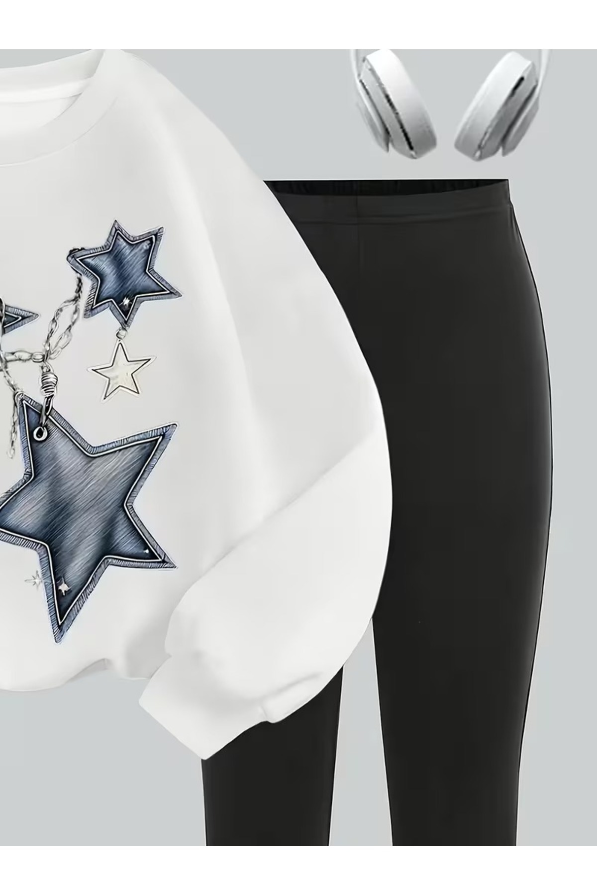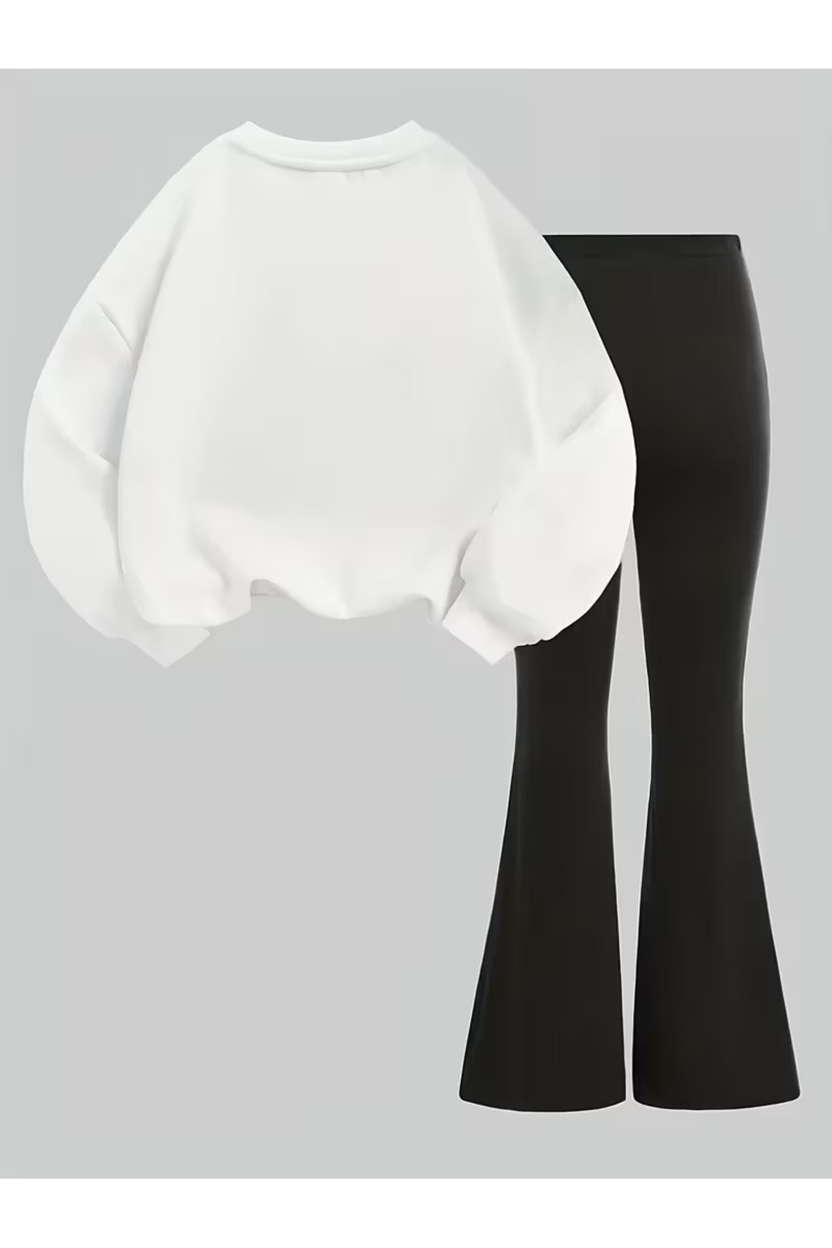 Kız Çocuk Beyaz-Siyah\Kot Yıldızlar Baskılı Bisiklet Yaka-İspanyol Paça Pantalon Takımı Kız Çocuk Beyaz-Siyah\Kot Yıldızlar Baskılı Bisiklet Yaka-İspanyol Paça Pantalon Takımı boleşofmanlar 13-14 Yaş