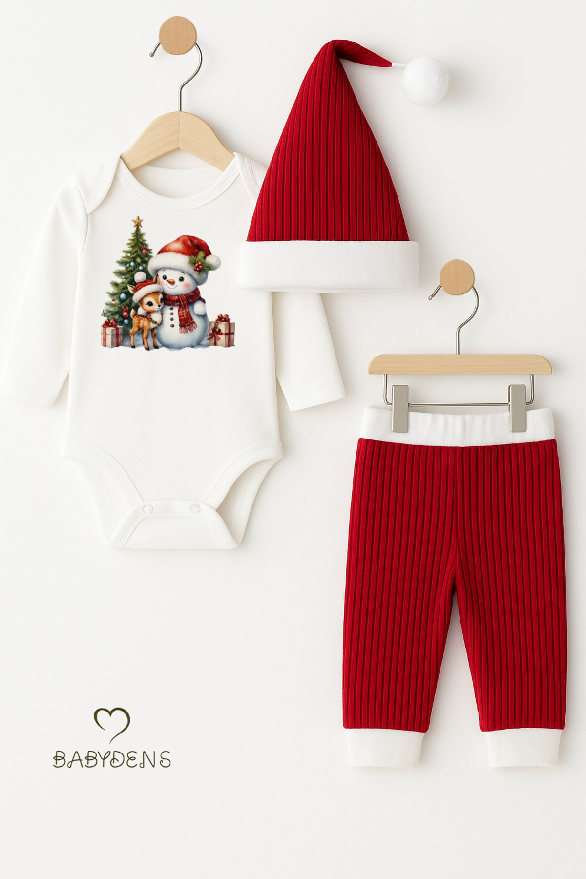 Bebek Yılbaşı Noel Kıyafeti 3’lü Takımı Snowman Baskılı Body,Kırmızı Fitilli Pantolon,Noel Şapkası Bebek Yılbaşı Noel Kıyafeti 3’lü Takımı Snowman Baskılı Body,Kırmızı Fitilli Pantolon,Noel Şapkası BD014 6-9 AY