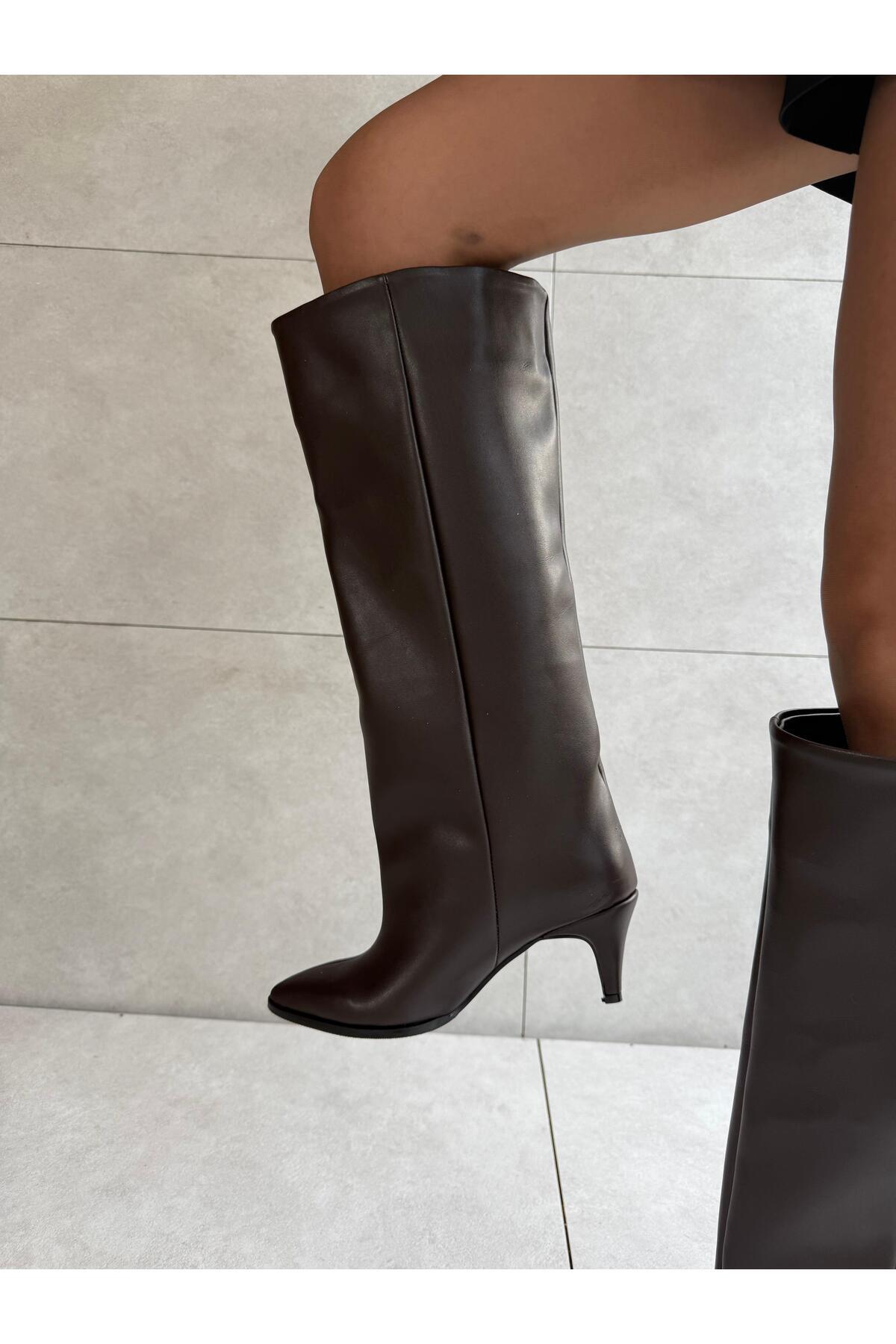 Jules Acı Kahve Deri XL Kesim İnce Topuklu Çizme Jules Acı Kahve Deri XL Kesim İnce Topuklu Çizme ELV-1423425432 40