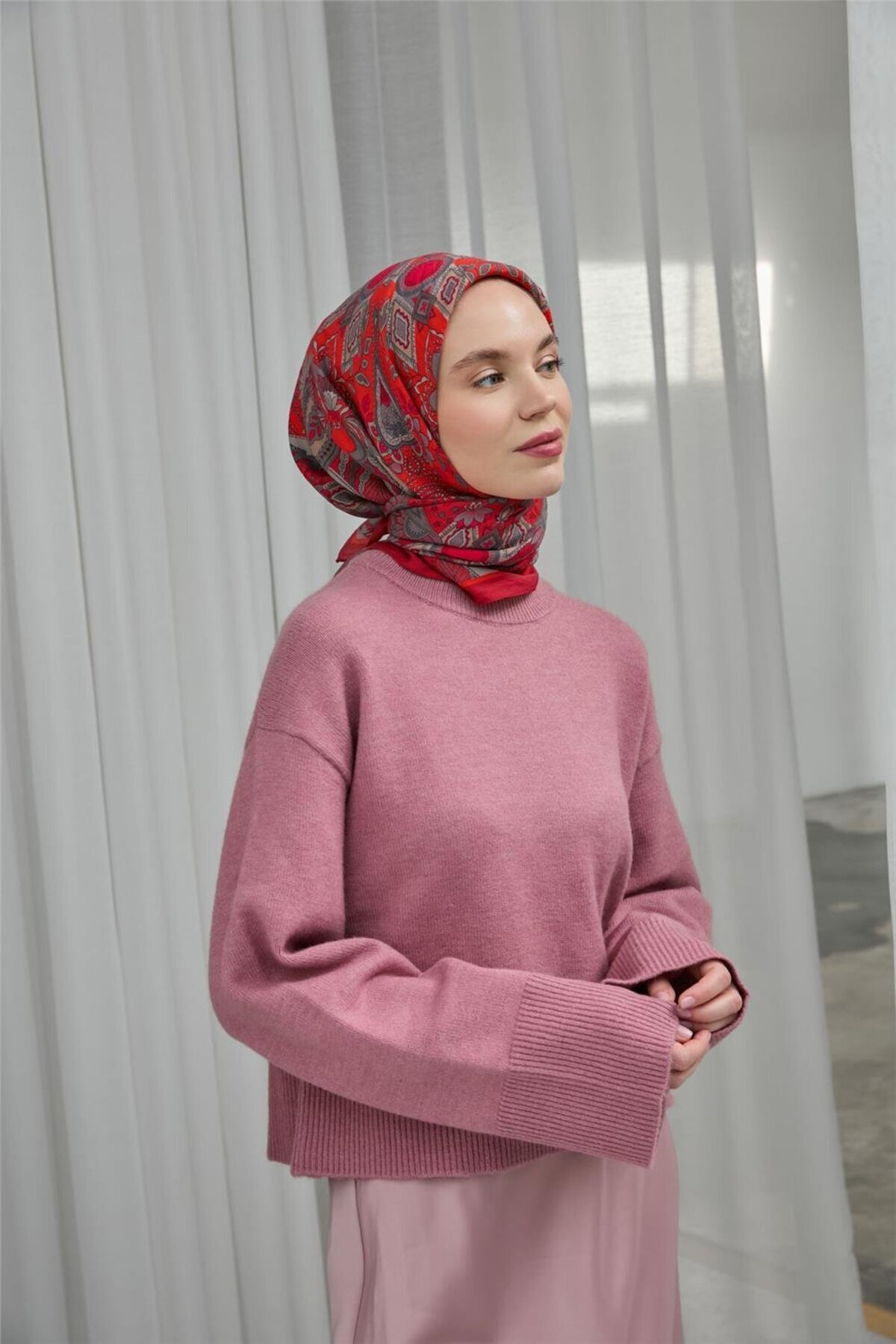 Viskon Eşarp Kırmızı Desenli Tok Duruşlu Dört Mevsim 90x90 Viskon Eşarp Kırmızı Desenli Tok Duruşlu Dört Mevsim 90x90 161006 تک سایز