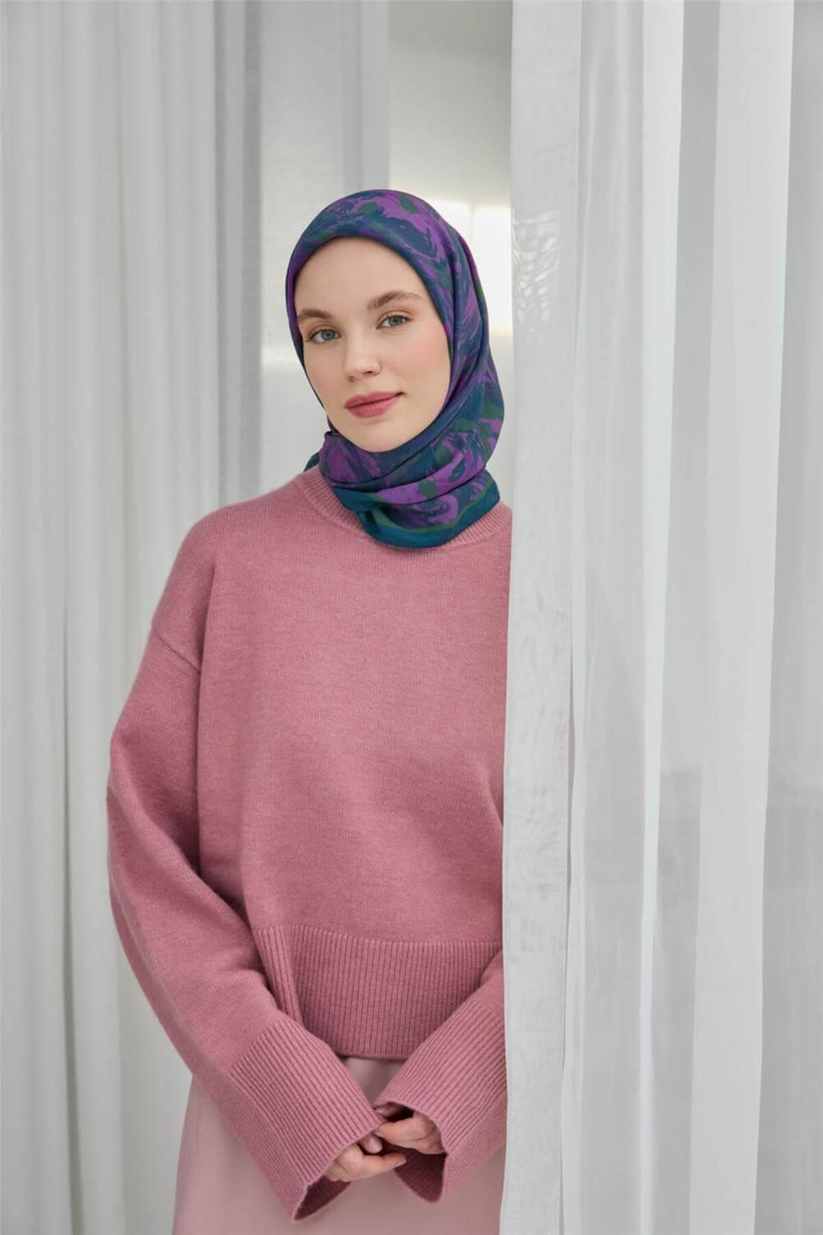Viskon Eşarp Violet Desenli Tok Duruşlu Dört Mevsim 90x90 Viskon Eşarp Violet Desenli Tok Duruşlu Dört Mevsim 90x90 161006 تک سایز