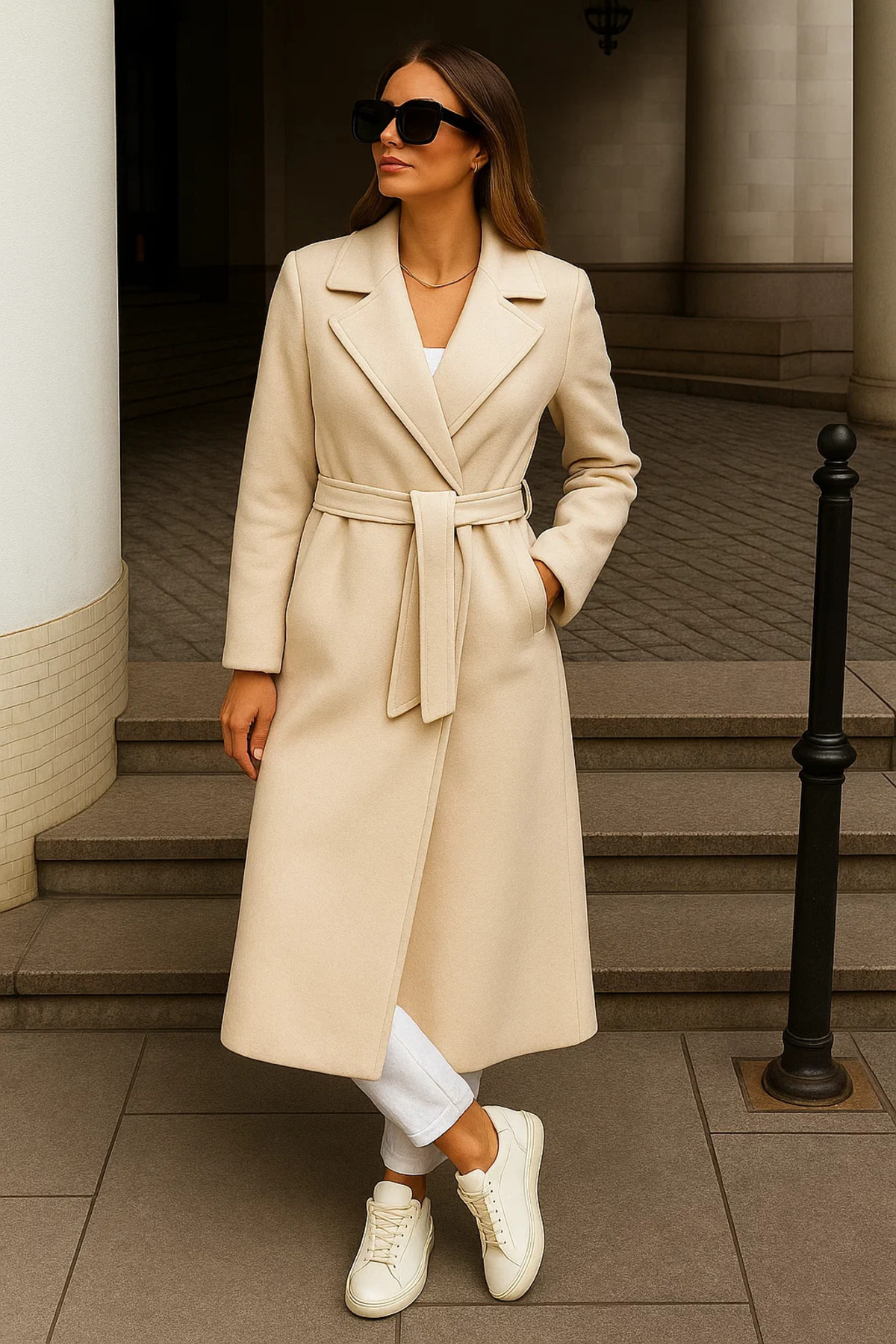 Kadın Kışlık Kuşaklı Uzun Kruvaze Krem Kaşe Kaban Kadın Kışlık Kuşaklı Uzun Kruvaze Krem Kaşe Kaban Ayna-2-Kaşekabanastarsız 44