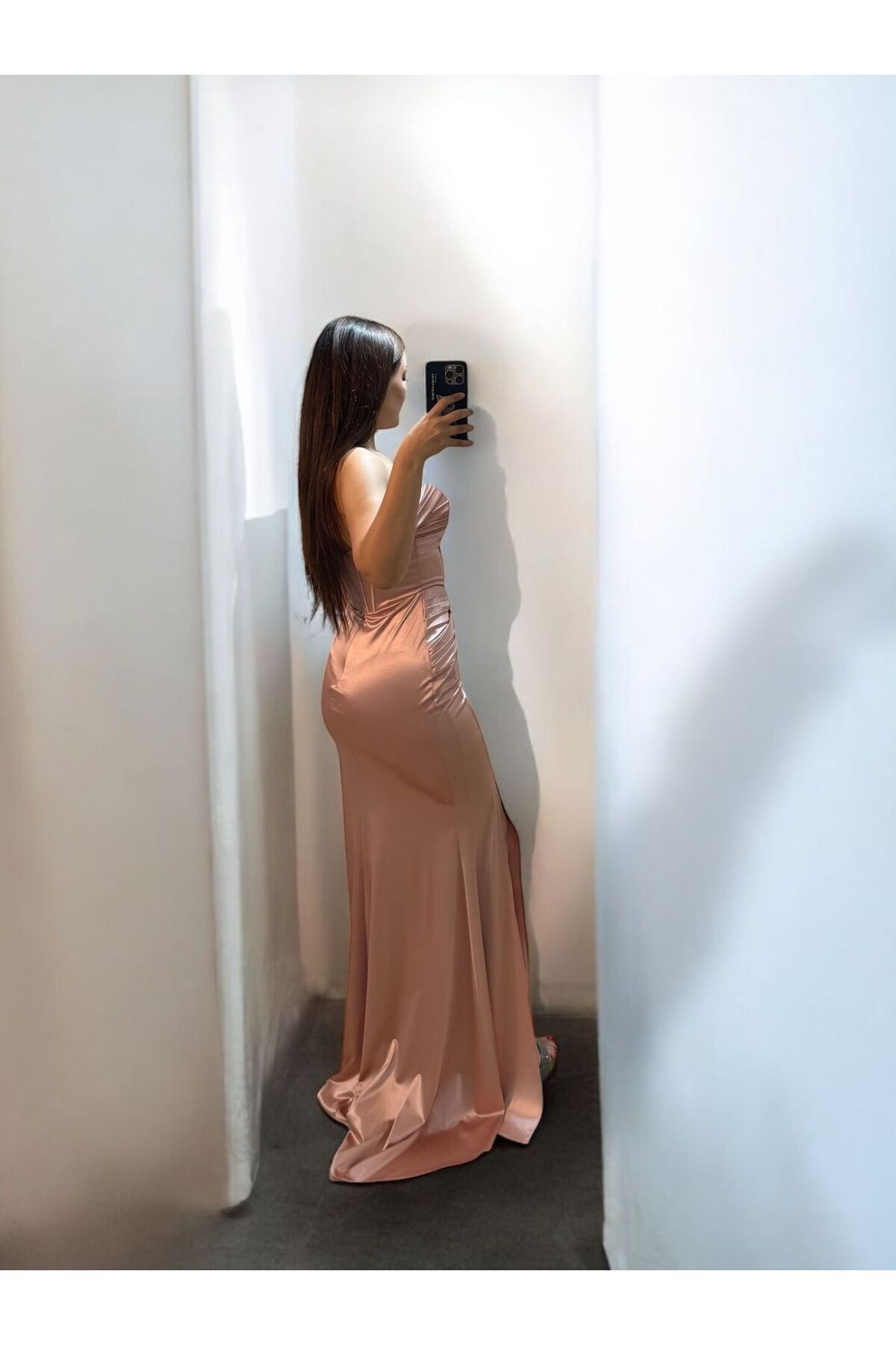 Aura Korseli Balık Model Saten Straplez Pudra Pembe Renk Abiye Elbise-36 Aura Korseli Balık Model Saten Straplez Pudra Pembe Renk Abiye Elbise-36 BLKPMB1 38