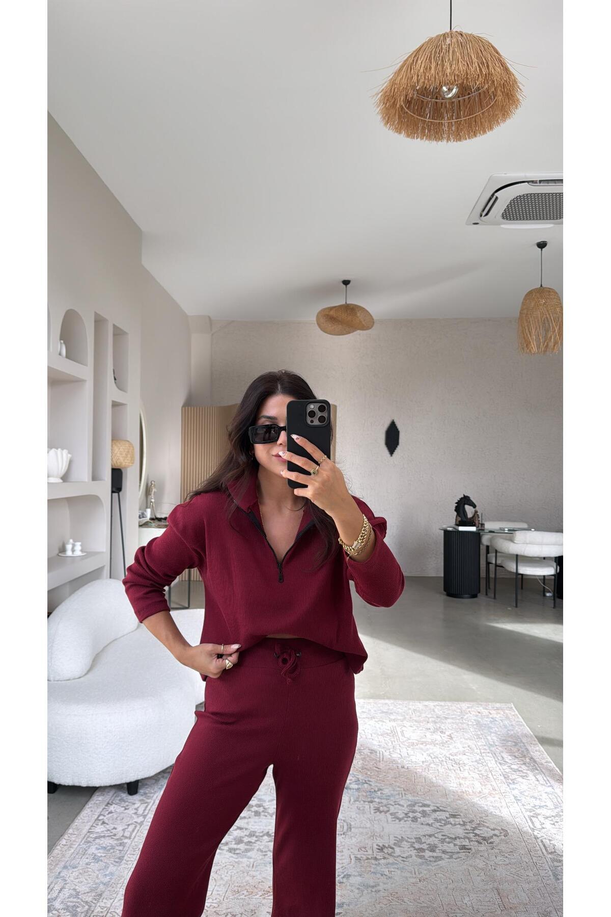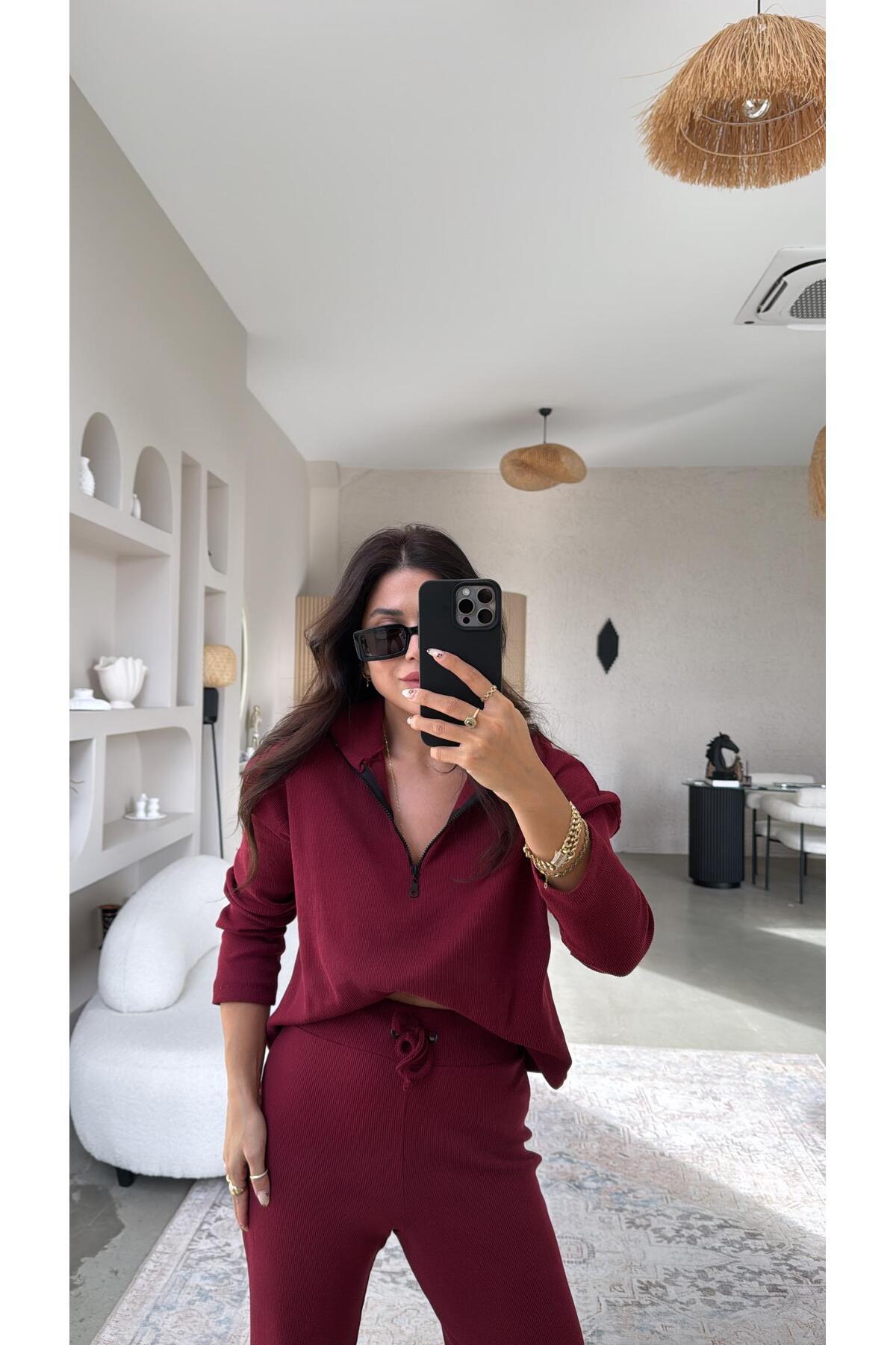 Bordo Yarım Fermuarlı Fitilli Basic Takım Bordo Yarım Fermuarlı Fitilli Basic Takım TX5B73BAD85511 L/XL