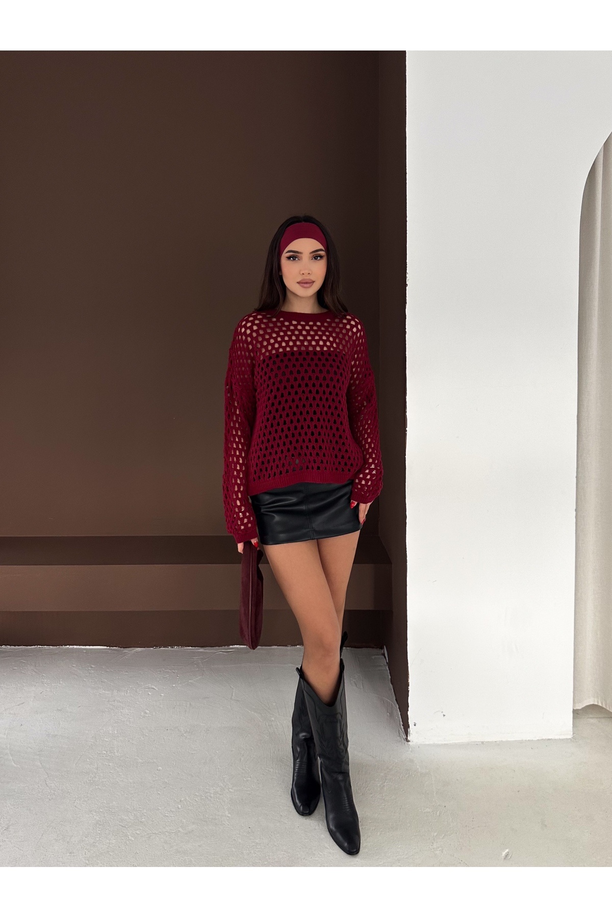 Uzun Kollu Delikli Triko Kazak Uzun Kollu Delikli Triko Kazak 3456765f Standart
