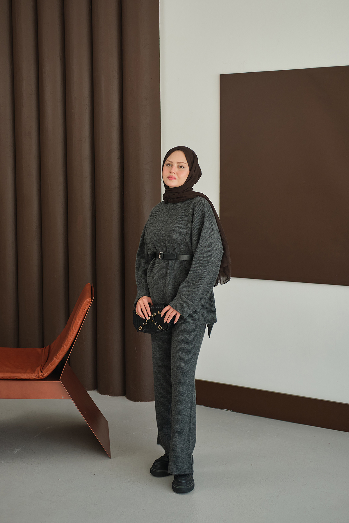Kadın Beli Lastikli Triko Takım Antrasit Kadın Beli Lastikli Triko Takım Antrasit 112-812 22STD