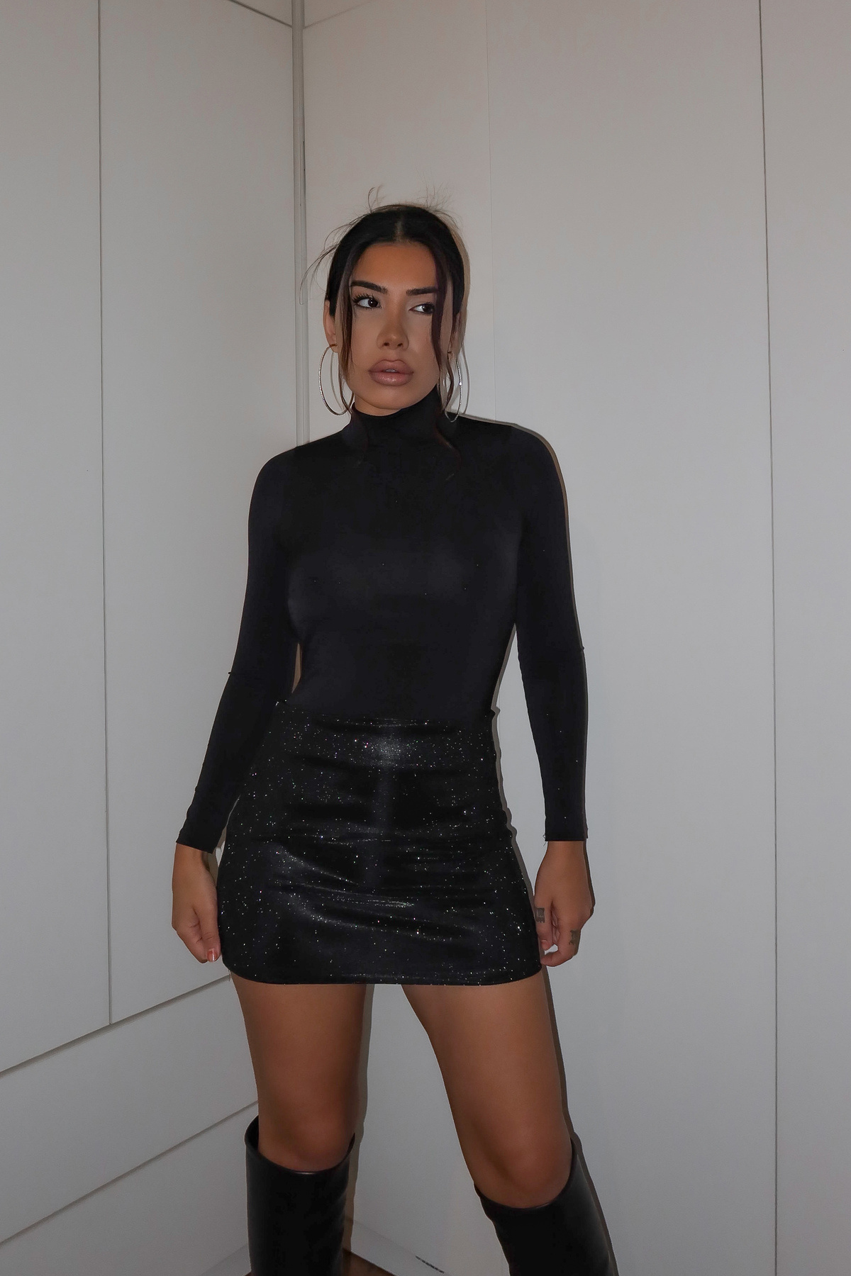 simli mini etek simli mini etek THE000457 L