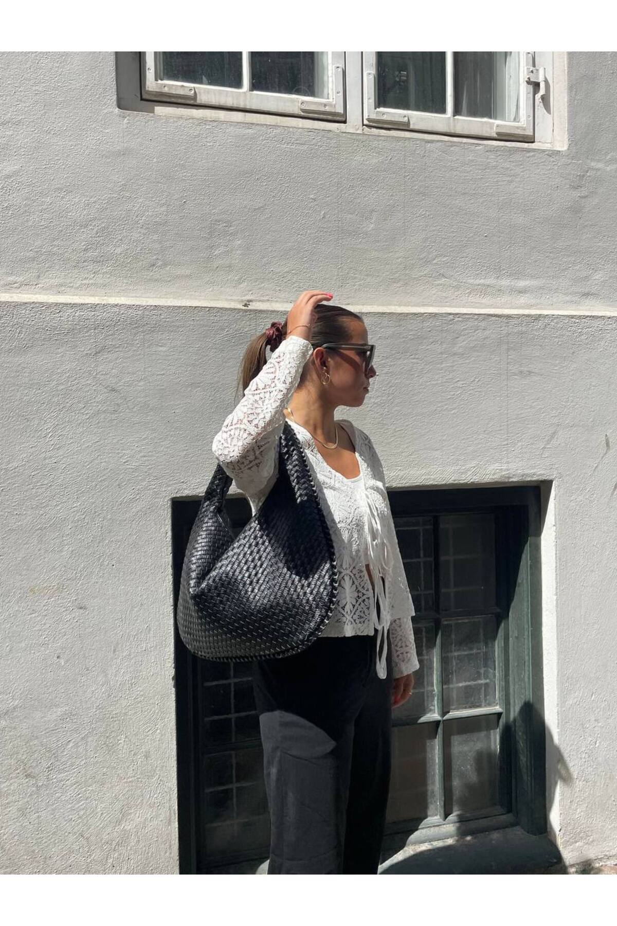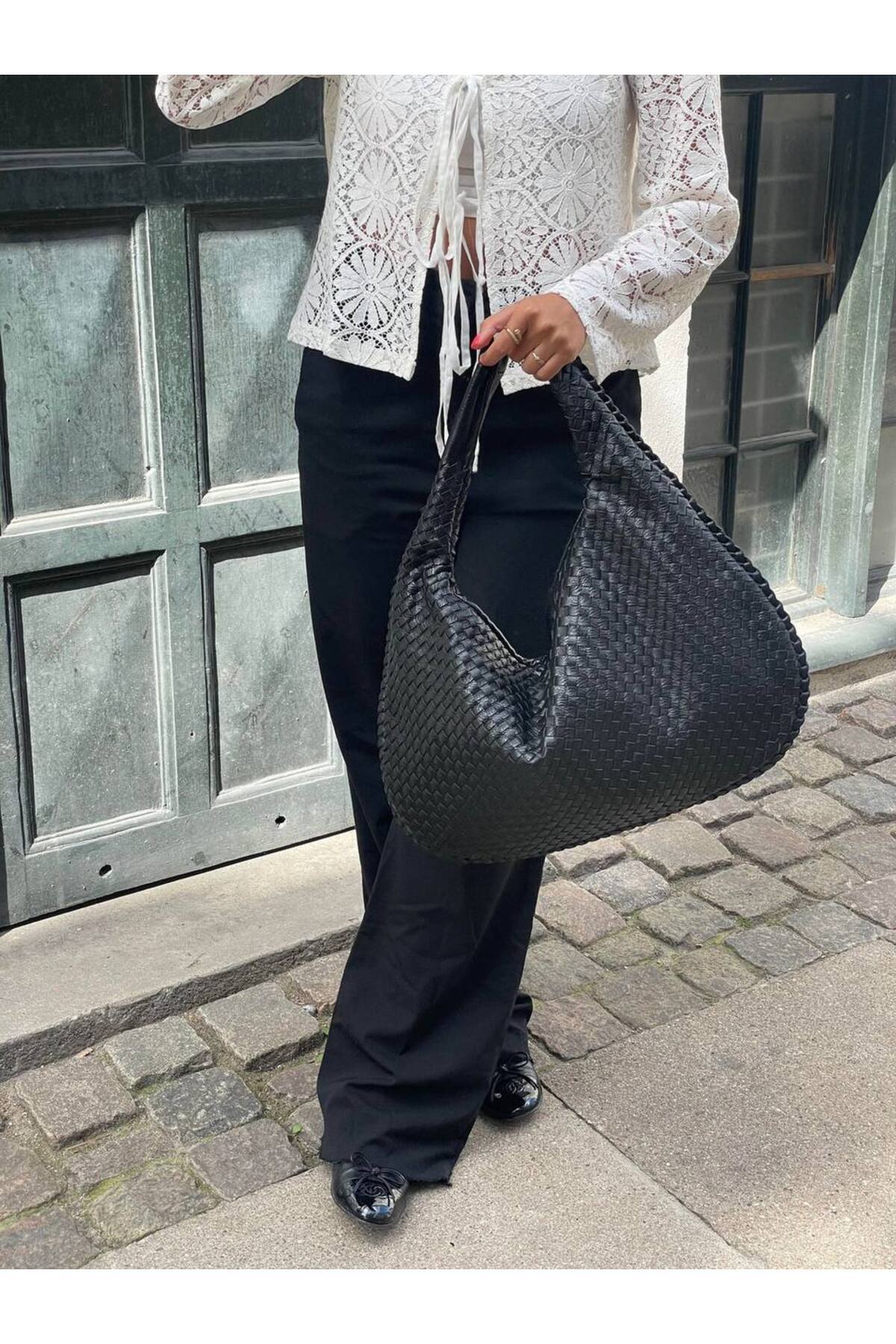 LAURA Siyah Örgü Detay Büyük Boy El Ve Omuz Kadın Çantası LAURA Siyah Örgü Detay Büyük Boy El Ve Omuz Kadın Çantası LAURA278 تک سایز
