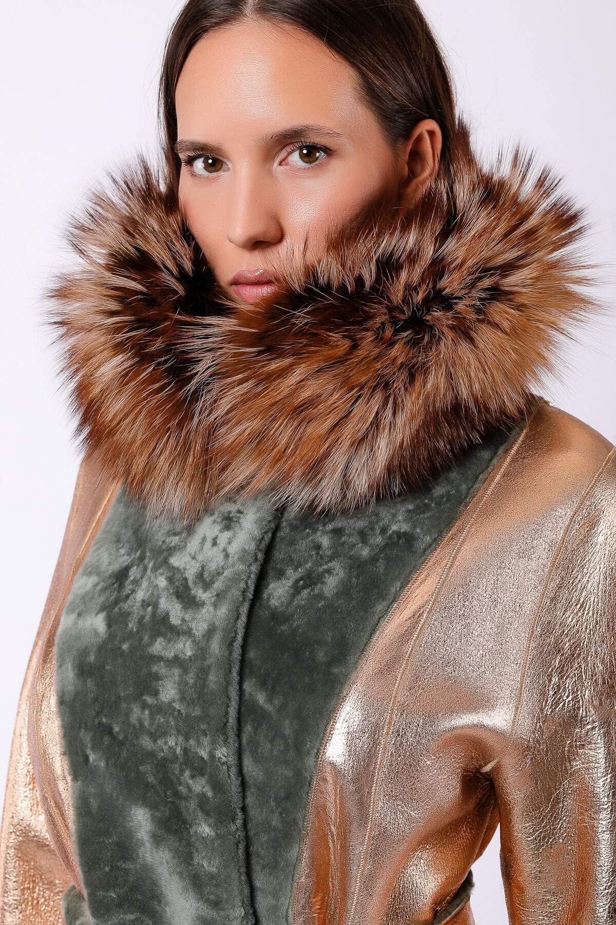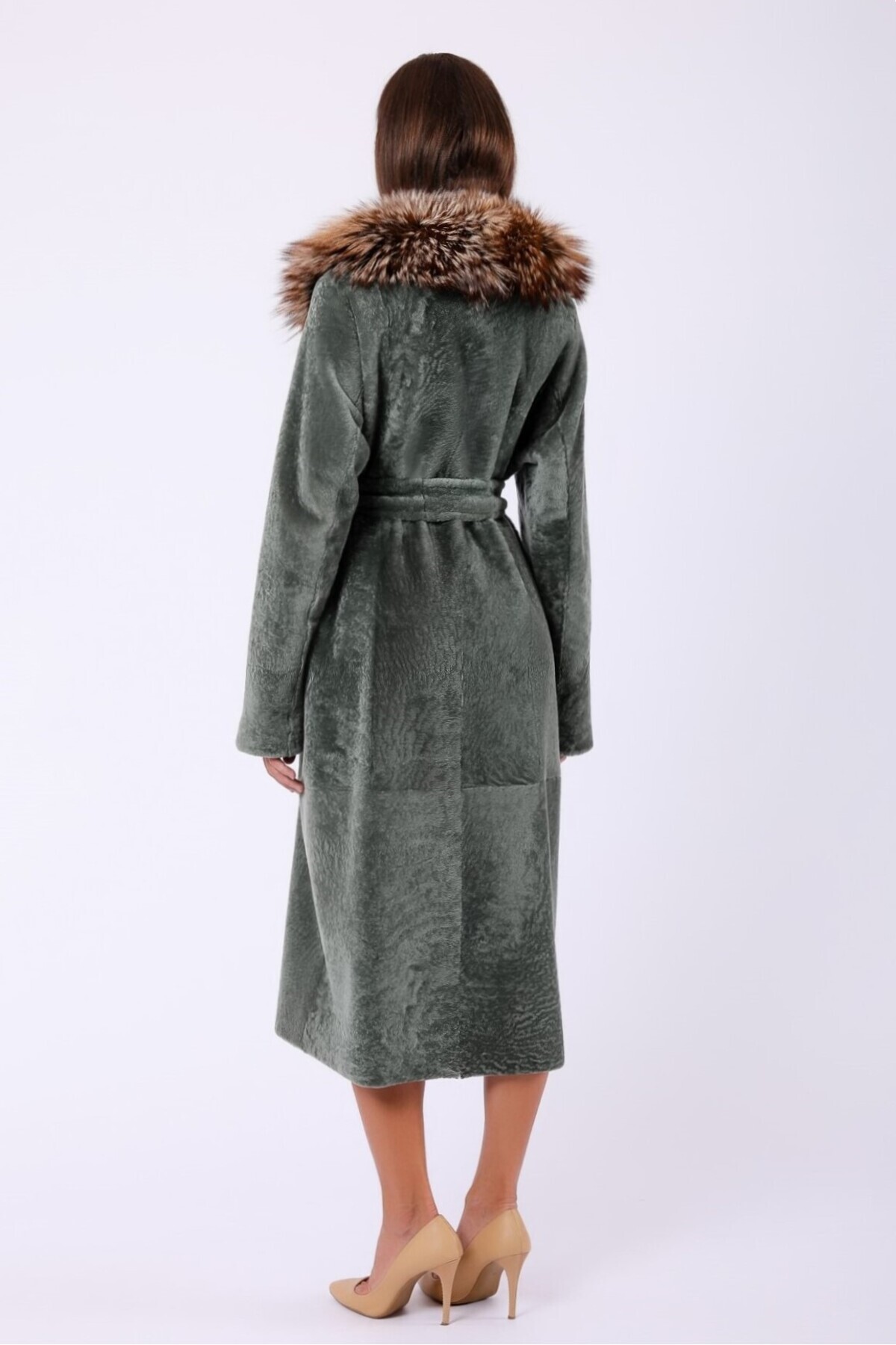 Yeşil Çift Taraflı Gold Fox Aksesuarlı Hakiki Astragan Kürk Kaban Yeşil Çift Taraflı Gold Fox Aksesuarlı Hakiki Astragan Kürk Kaban 1008-115 2XL