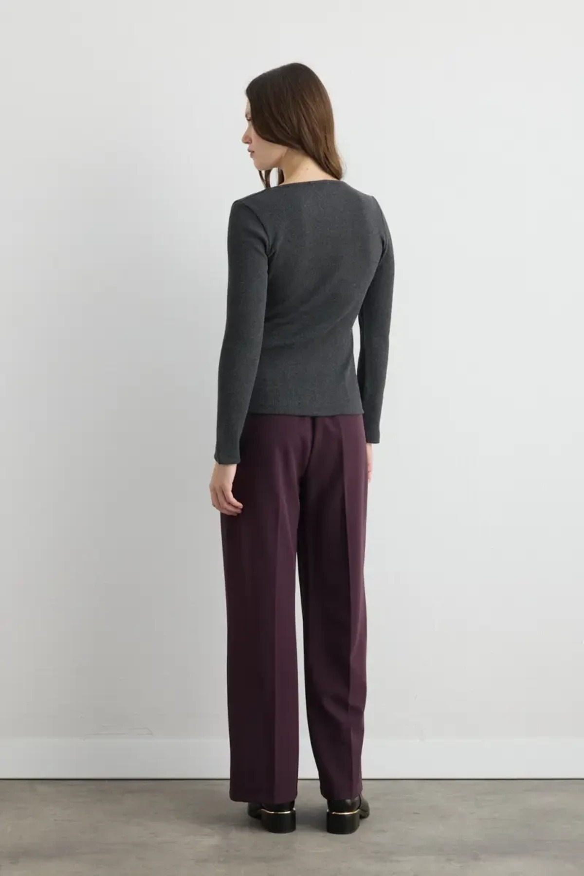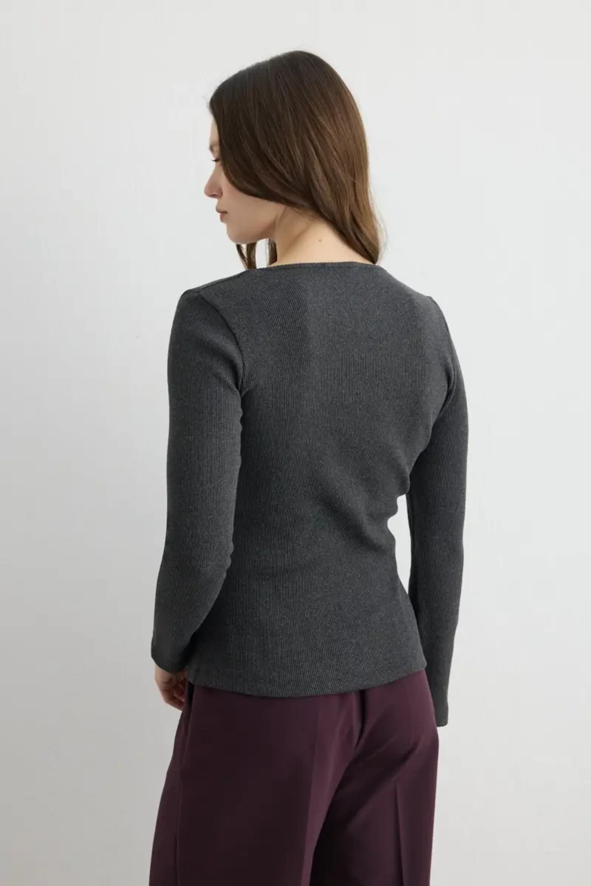 Kare Yaka Pamuk Örme Bluz - Füme Kare Yaka Pamuk Örme Bluz - Füme 26KGN012 3