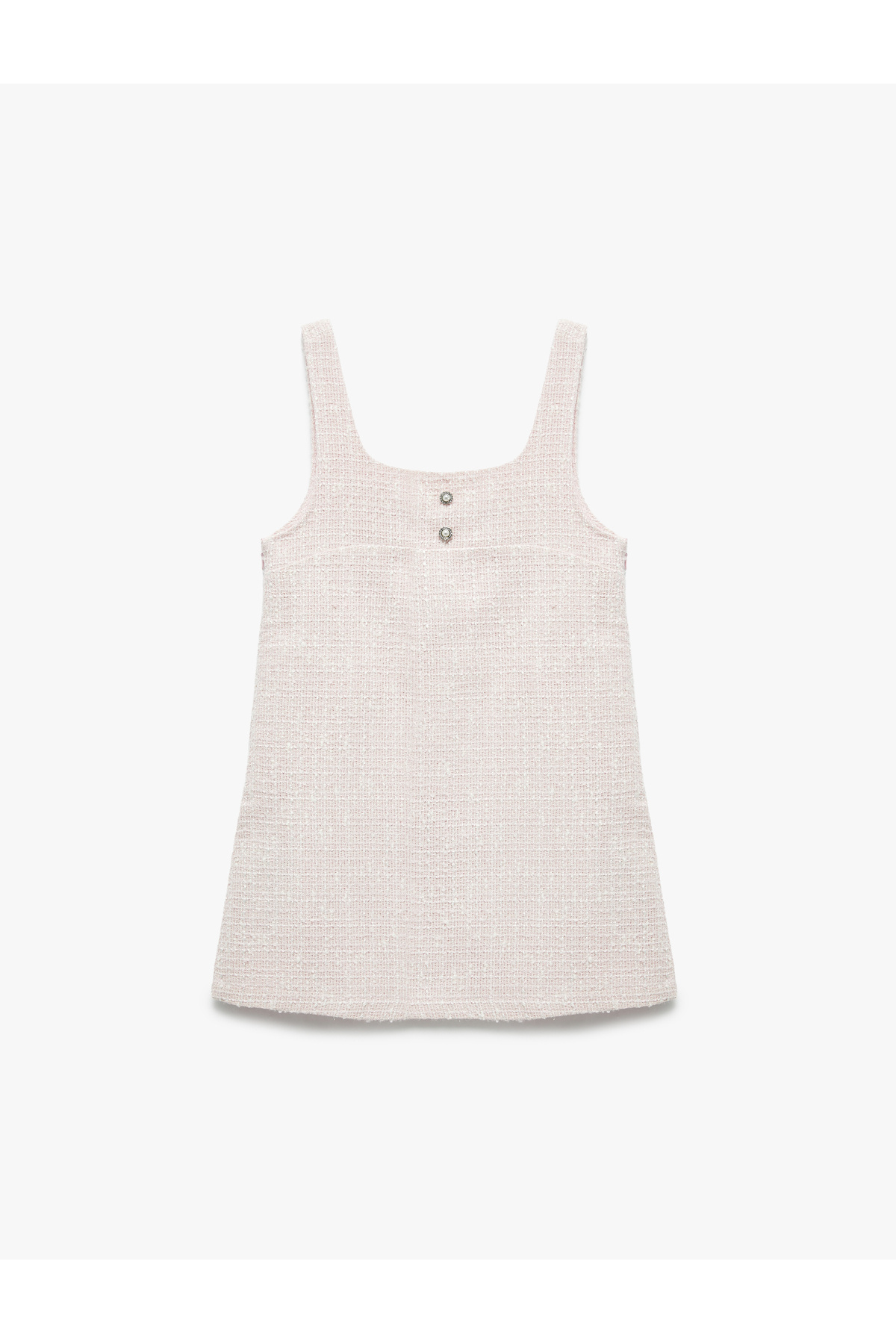 V Yaka Kolsuz Cep Detaylı Tüvit Jile Elbise V Yaka Kolsuz Cep Detaylı Tüvit Jile Elbise 6SKG80028AW 13-14 Yaş