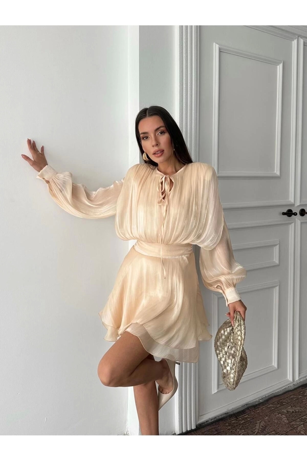 Kruvaze Yaka Beli Lastikli Şifon Mini Elbise Kruvaze Yaka Beli Lastikli Şifon Mini Elbise vera09 42