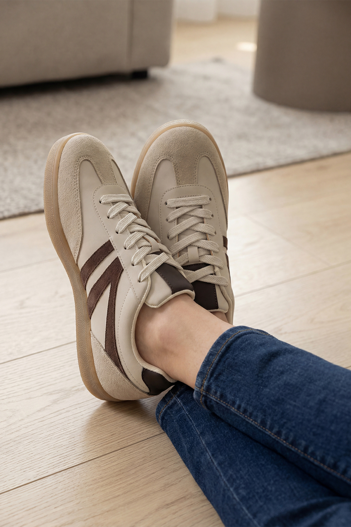 Kadın Sneaker Bağcıklı Düz Taban Retro Spor Ayakkabı Norde Bej Kadın Sneaker Bağcıklı Düz Taban Retro Spor Ayakkabı Norde Bej 3211004M35 40