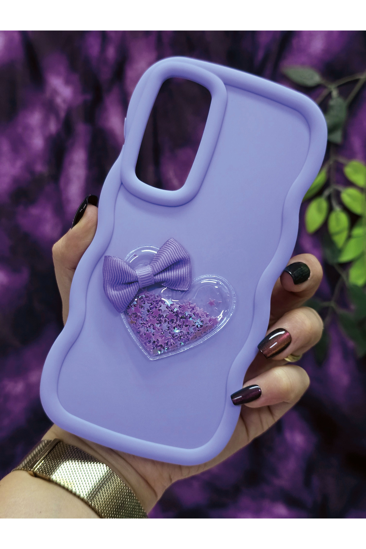Samsung Galaxy A55 Uyumlu Kalpli ve Kurdeleli Yıldız Simli Lila Telefon Kılıfı Samsung Galaxy A55 Uyumlu Kalpli ve Kurdeleli Yıldız Simli Lila Telefon Kılıfı smsaa55kalp تک سایز