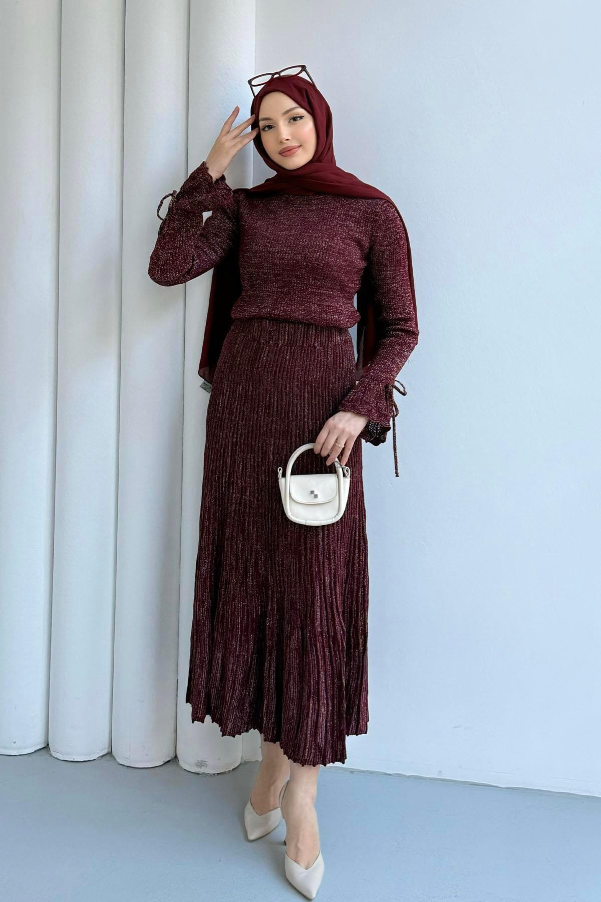 Crystal Çift Renk Kruvaze Triko Etekli Takım MÜRDÜM Crystal Çift Renk Kruvaze Triko Etekli Takım MÜRDÜM HLY0126K101.034 3
