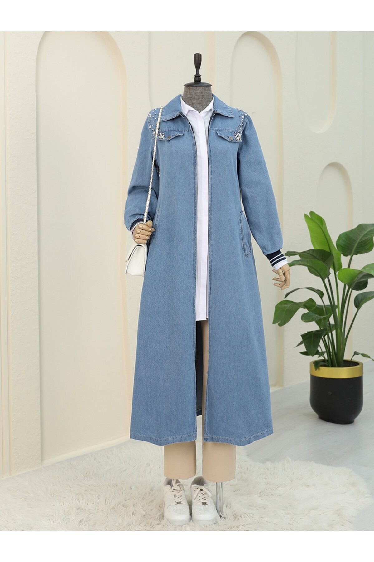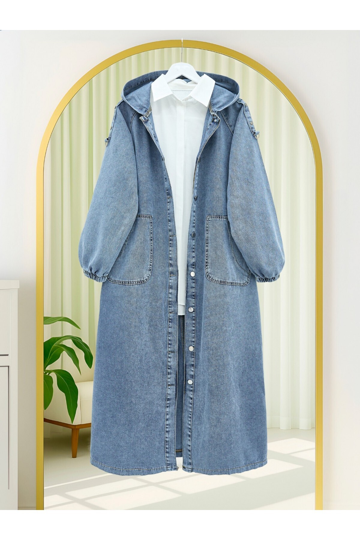 Önü Düğmeli Kapşonlu Apolet Detaylı Cepli Kot Kap Önü Düğmeli Kapşonlu Apolet Detaylı Cepli Kot Kap HJB239351348 42