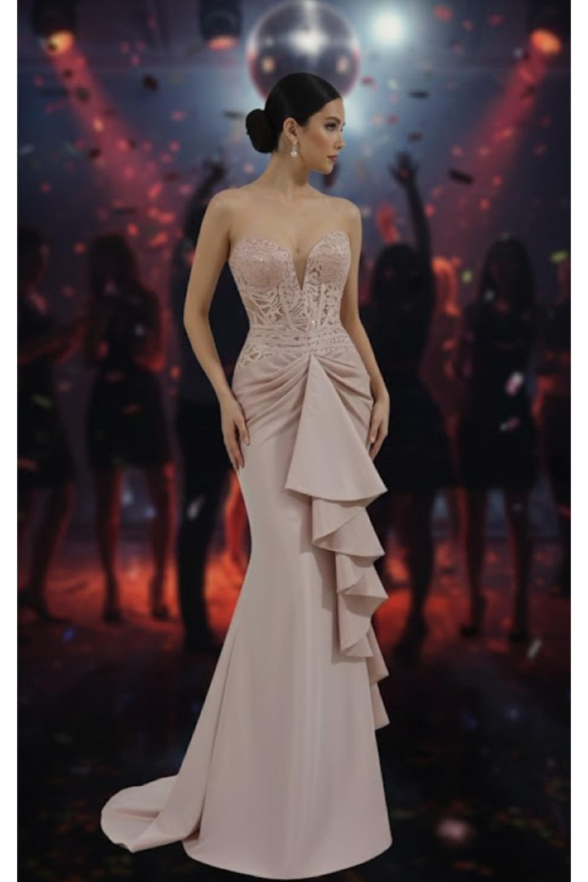 ABİYE KADIN STRAPLEZ OTRİŞ VE TÜY DETAYLI PUL PAYET DETAYLI ELBİSE ABİYE KADIN STRAPLEZ OTRİŞ VE TÜY DETAYLI PUL PAYET DETAYLI ELBİSE 5000 38