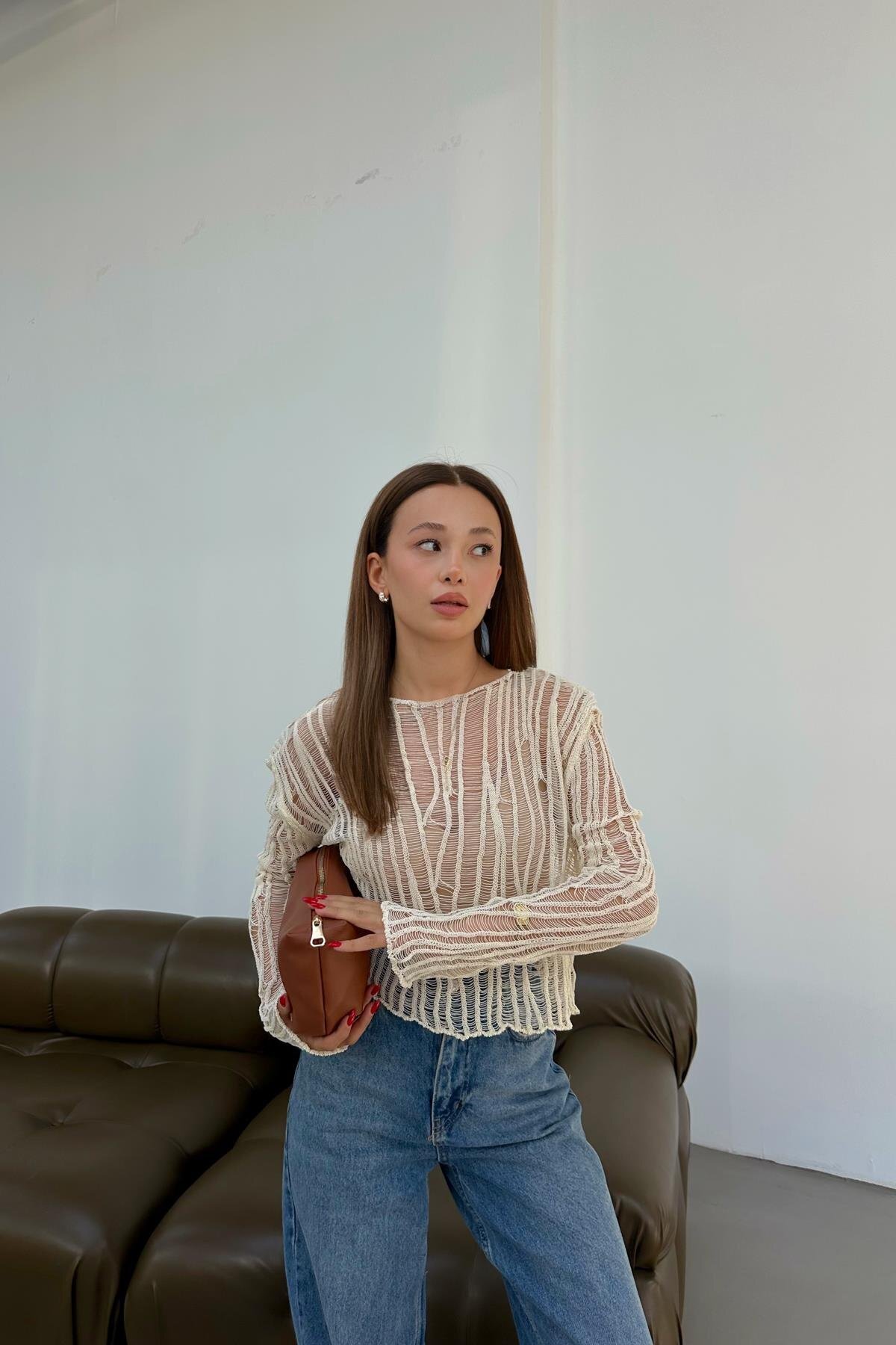 Drapeli Taşlı Bluz Siyah Drapeli Taşlı Bluz Siyah TX9AD2483640942 L