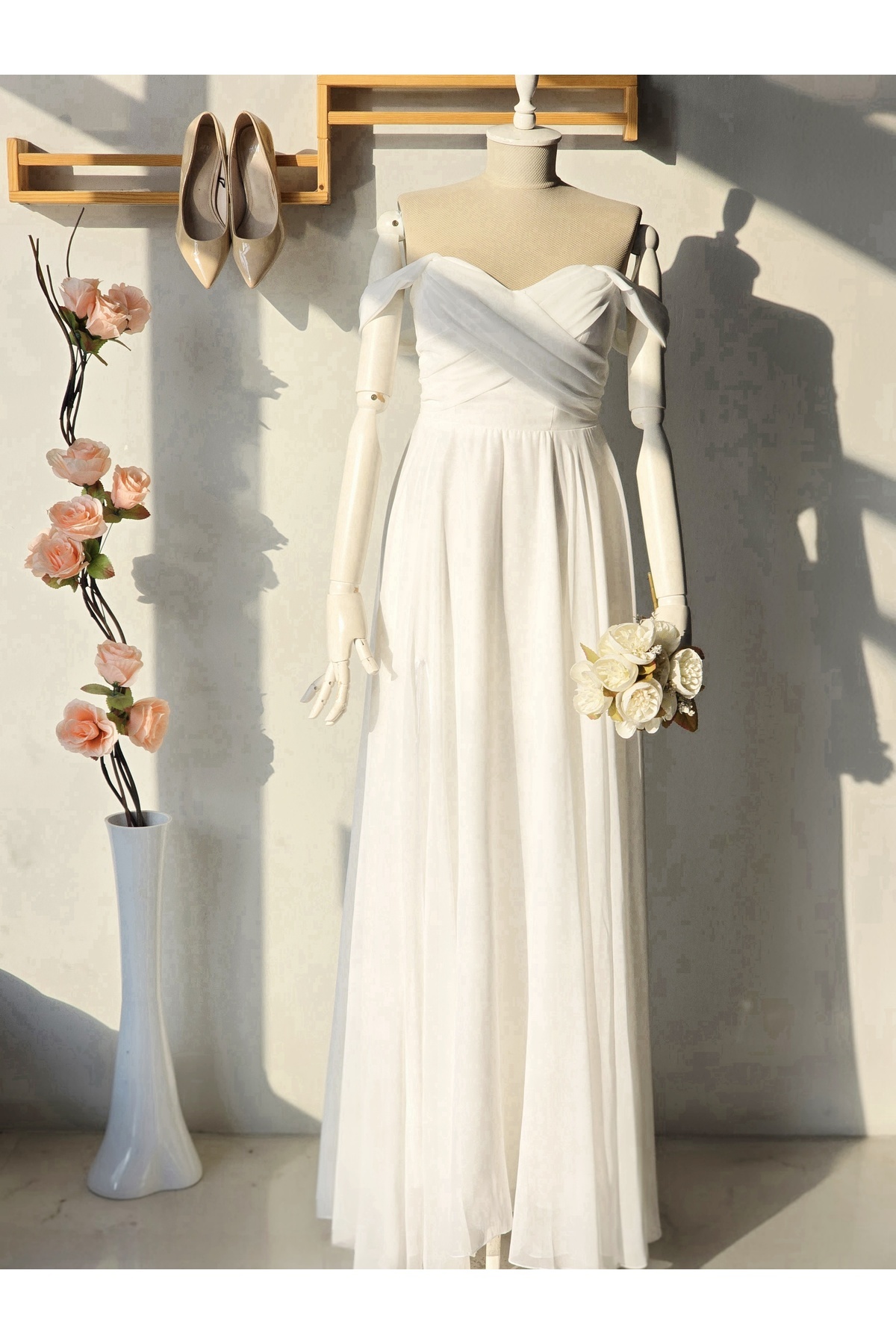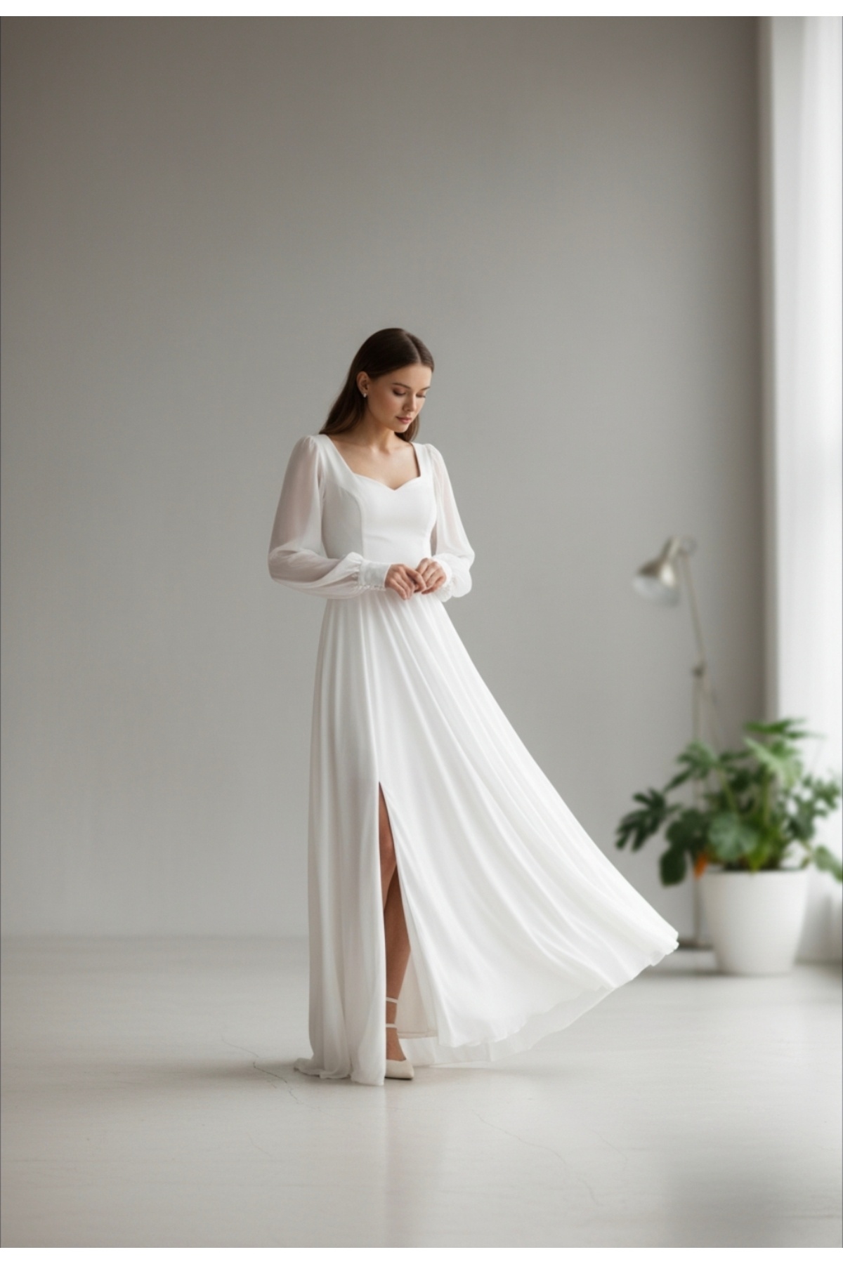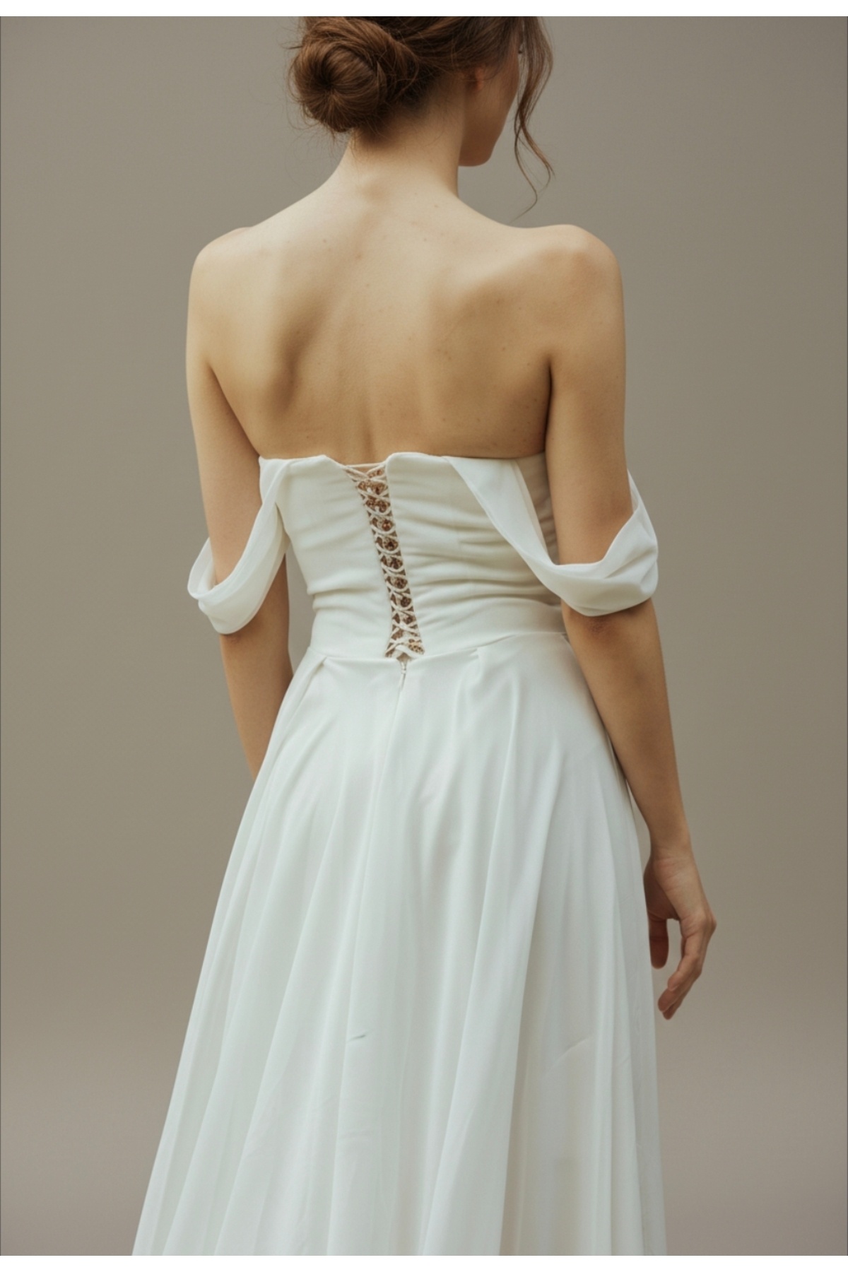 Nikah Nişan Abiye Dış Çekim Elbise Drapeli Düşük Kol Şifon Elbise Nikah Nişan Abiye Dış Çekim Elbise Drapeli Düşük Kol Şifon Elbise NF2277 50