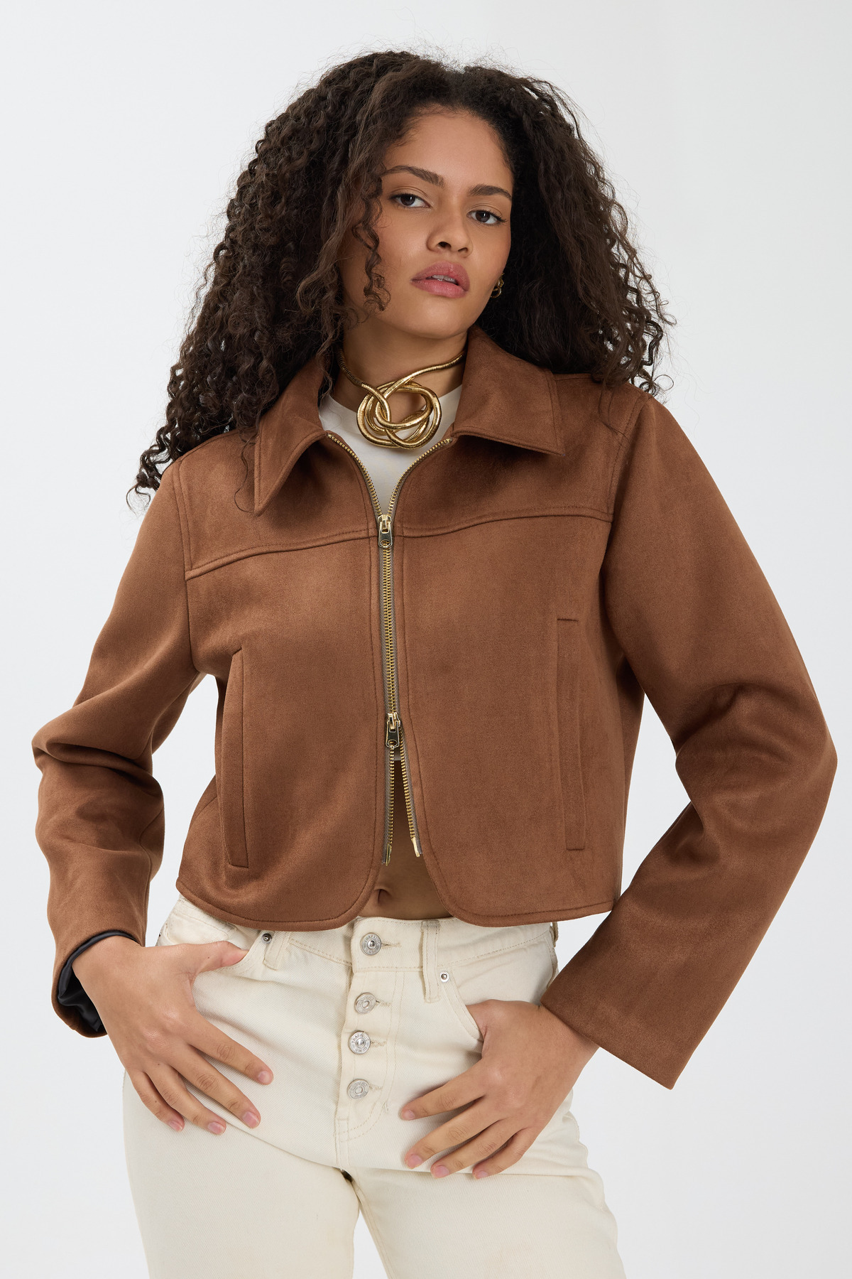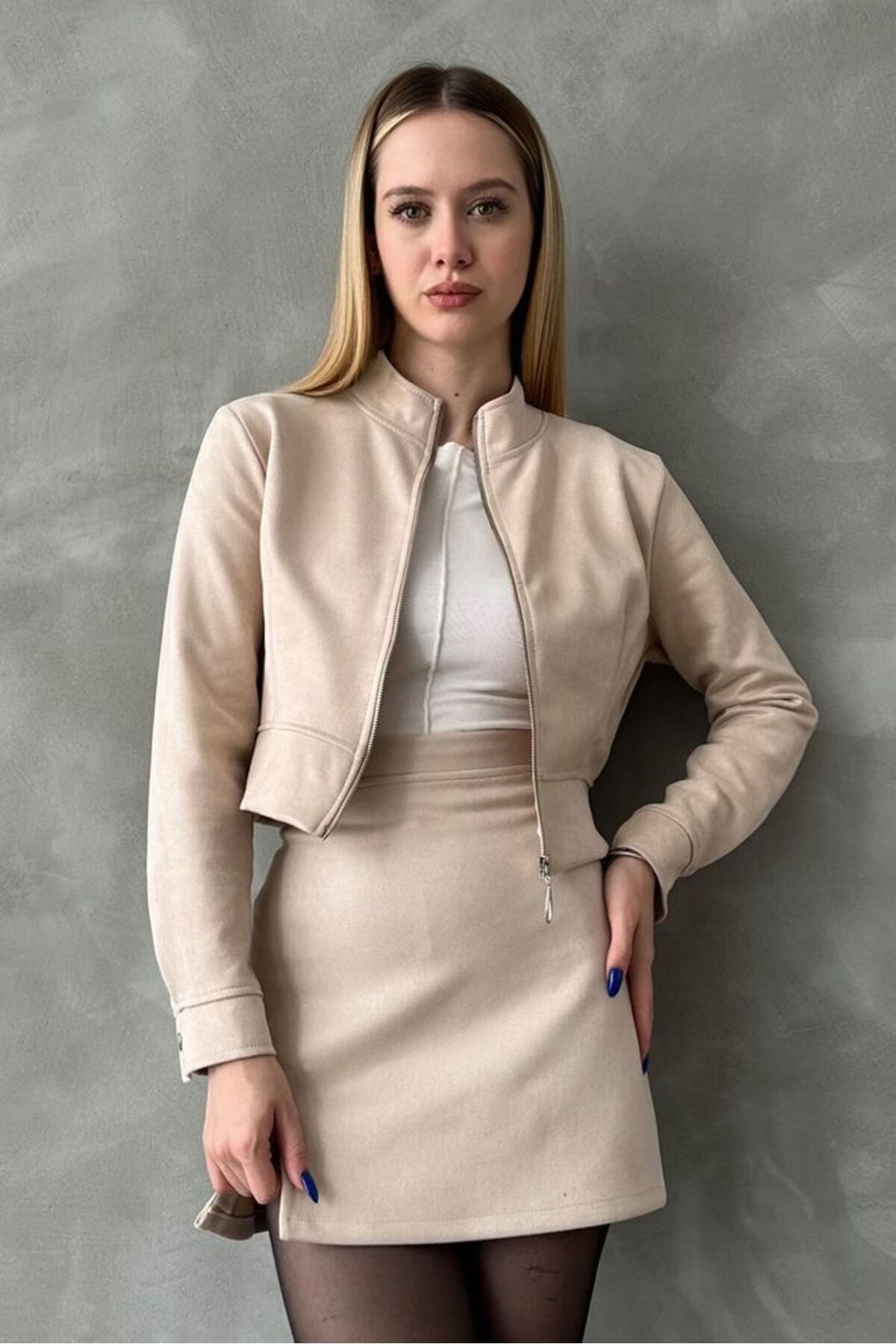 Kadın Uzun Kollu Yuvarlak Yaka önden Fermuarlı Süet Ceket Kadın Uzun Kollu Yuvarlak Yaka önden Fermuarlı Süet Ceket 153780aym L/XL