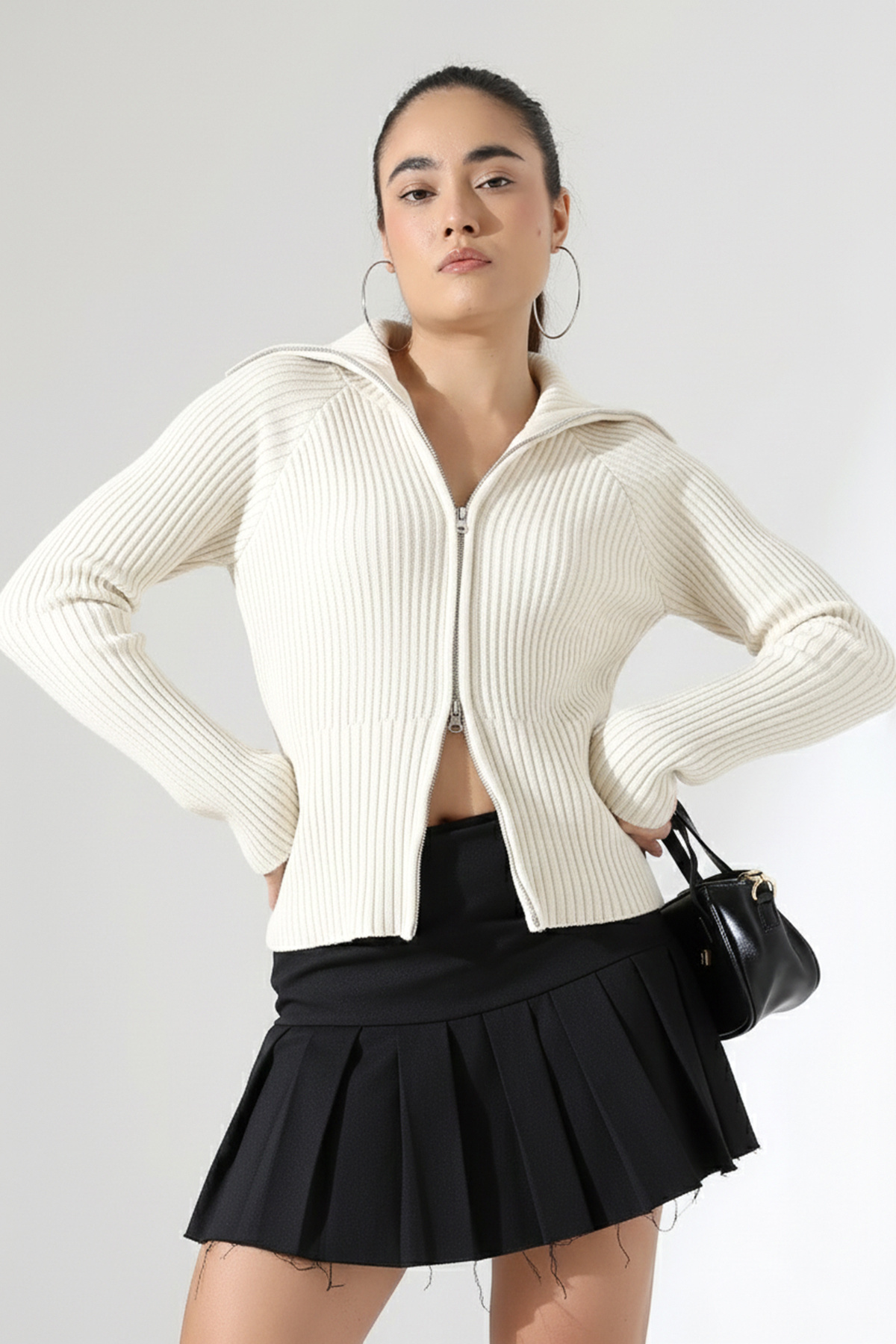 Kadın Çift Fermuarlı Devrik Yaka Tasarım Hırka Kadın Çift Fermuarlı Devrik Yaka Tasarım Hırka 2025HRK002 L