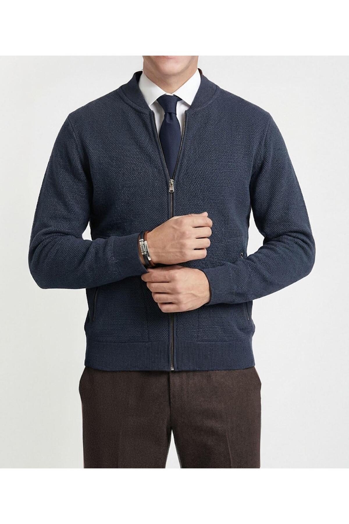 İtalyan stil erkek fermuarlı hırka lacivert T13142 İtalyan stil erkek fermuarlı hırka lacivert T13142 2XL
