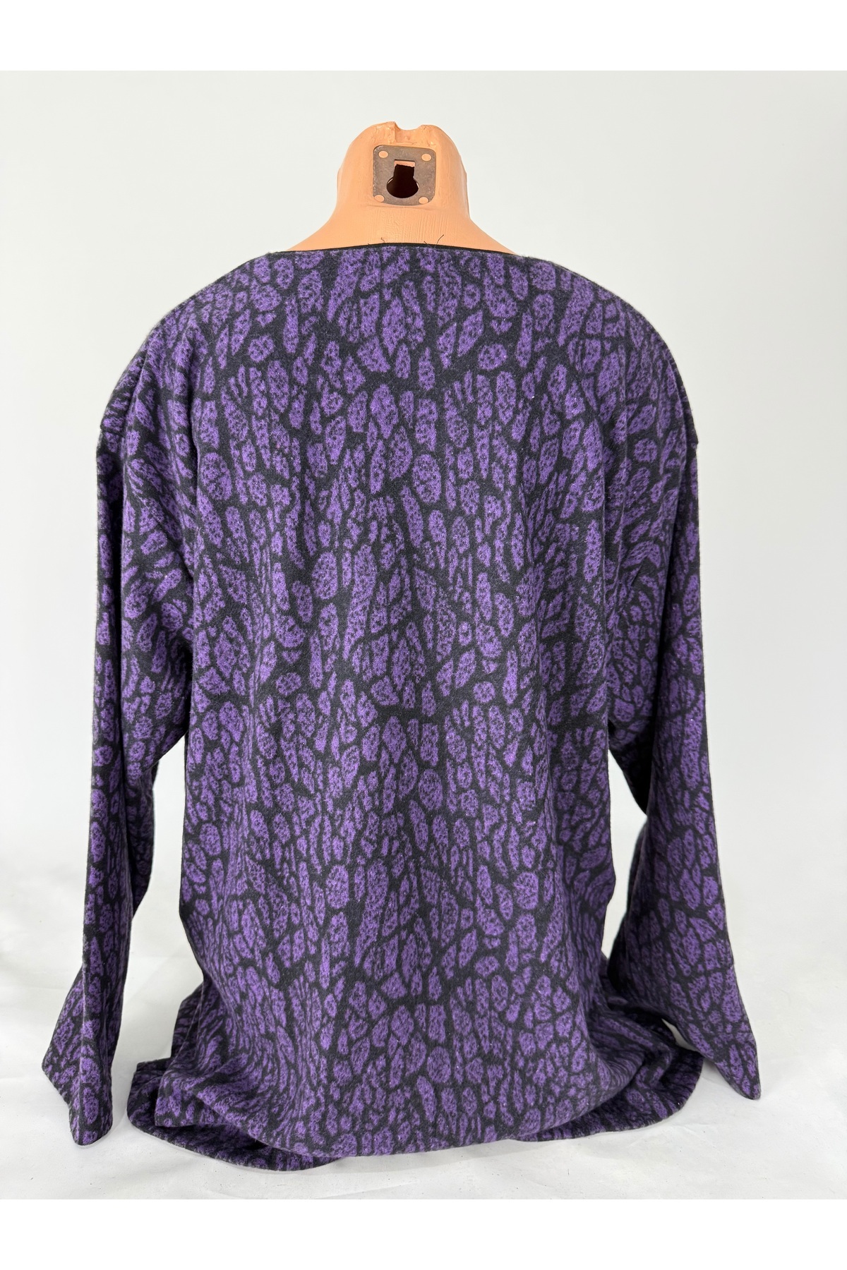 Kadın Siyah Mor Desenli U Yaka Uzun Kollu Yanları Yırtmaçlı Yün Anne Penye Tişört Kadın Siyah Mor Desenli U Yaka Uzun Kollu Yanları Yırtmaçlı Yün Anne Penye Tişört RLY-2730 4XL