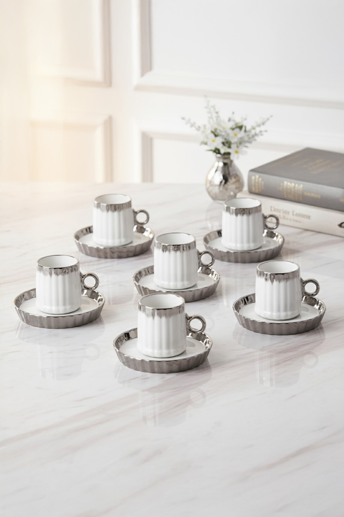 Ev dizaynım hana kahve fincan takımı (gümüş) Ev dizaynım hana kahve fincan takımı (gümüş) gümüş fincan تک سایز